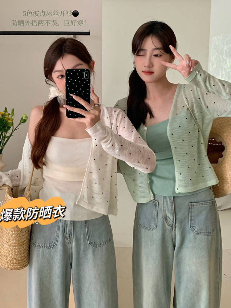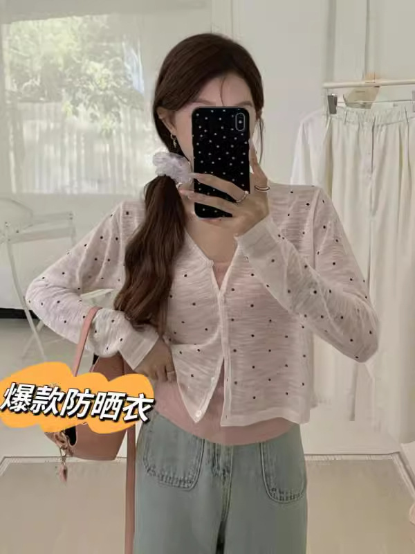 | nameOriginal | Korean Style Fresh Style Polo Dot Thin V-neck Top Long-sleeved Knitted Cardigan Women's Summer 2024 New All-match Sun-protective Shirt |