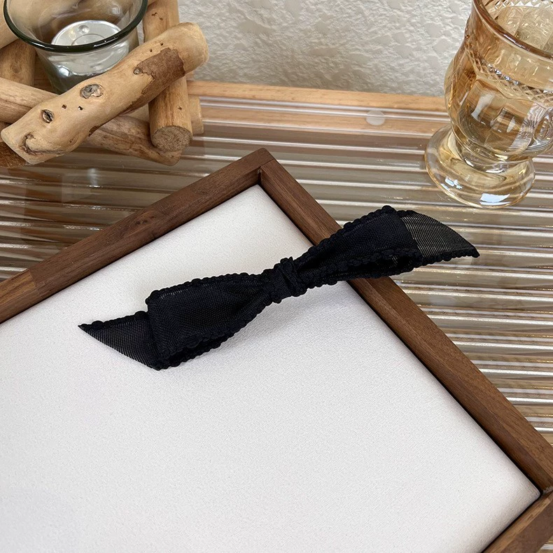 | nameOriginal | Korean style gentle creamy off-white black pink bow duckbill clip one-word clip hairpin hair accessories trendy |