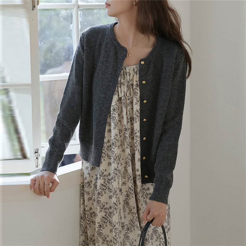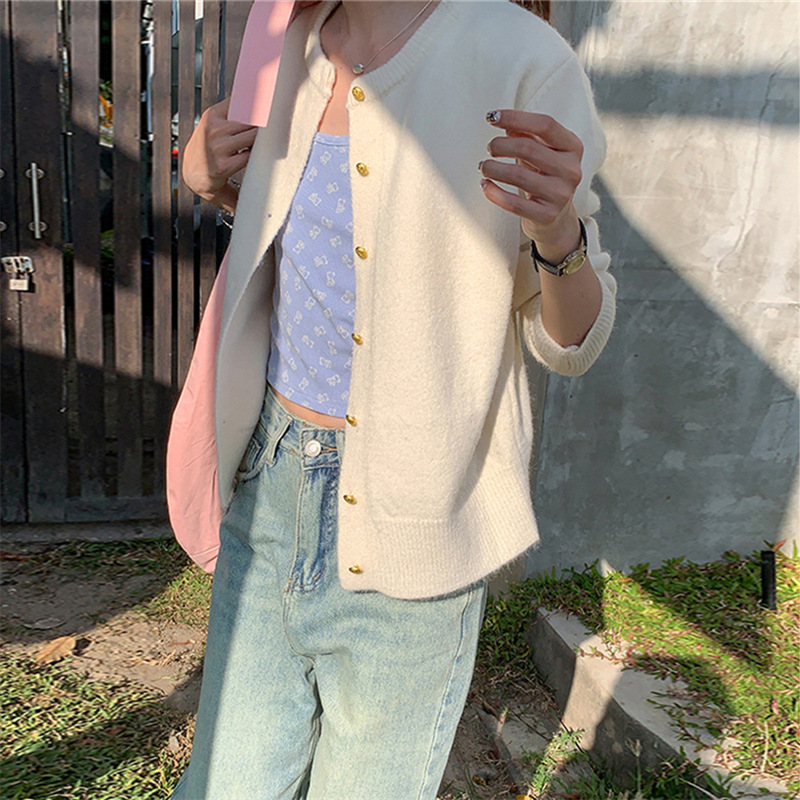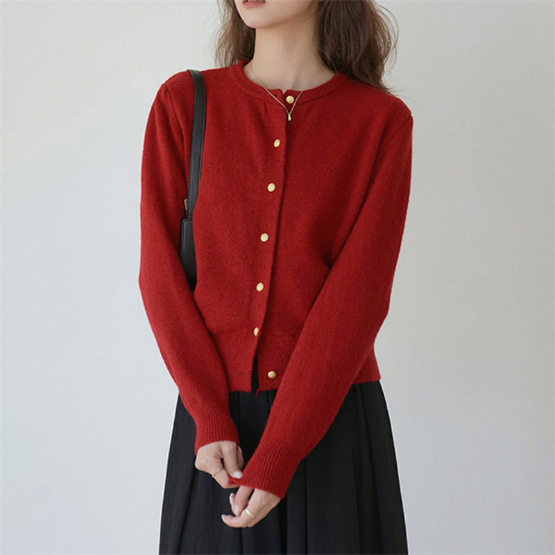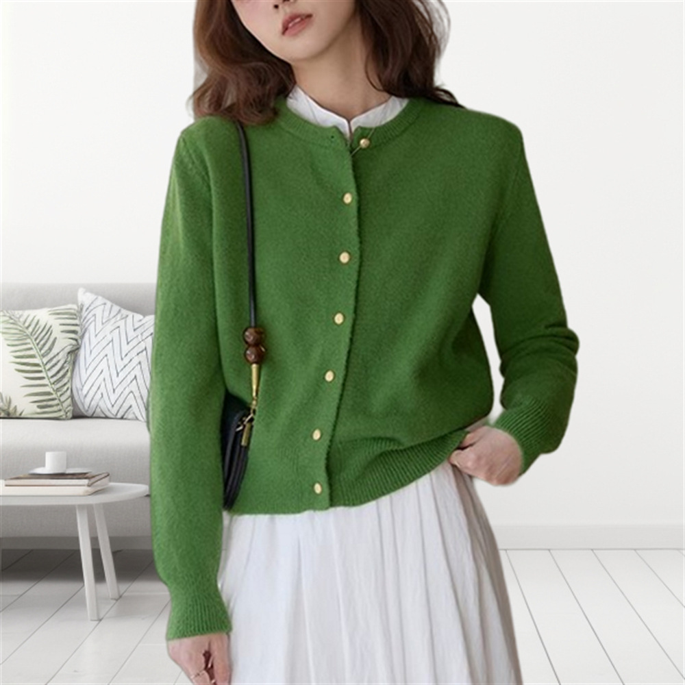 | nameOriginal | Korean Style Gentle Retro Small Gold Button Round Neck Knitted Cardigan Women's 2024 Autumn Loose Casual Basic Sweater Jacket |