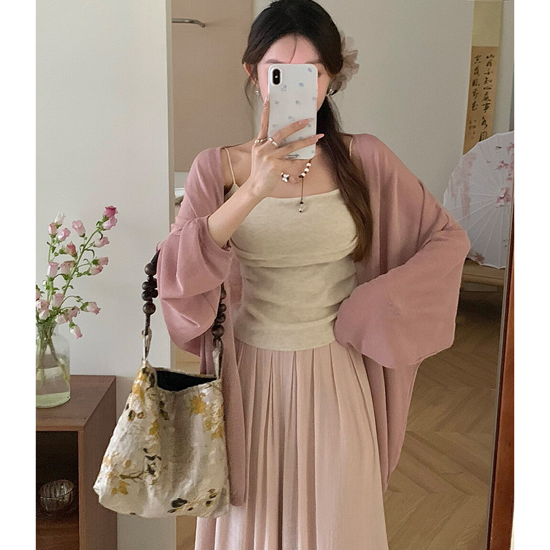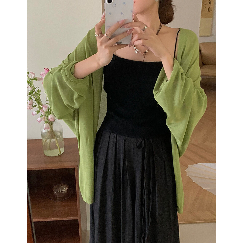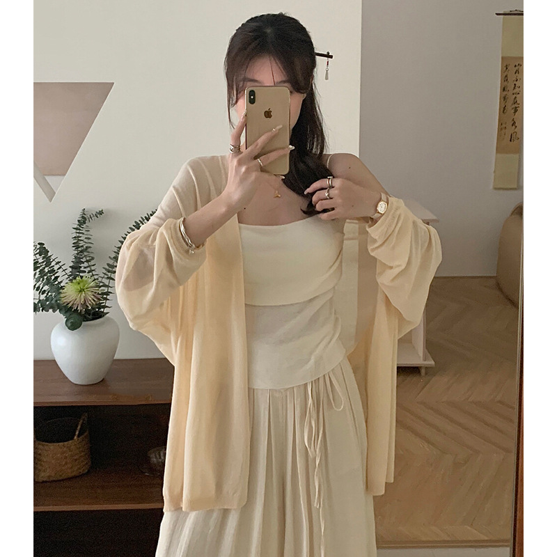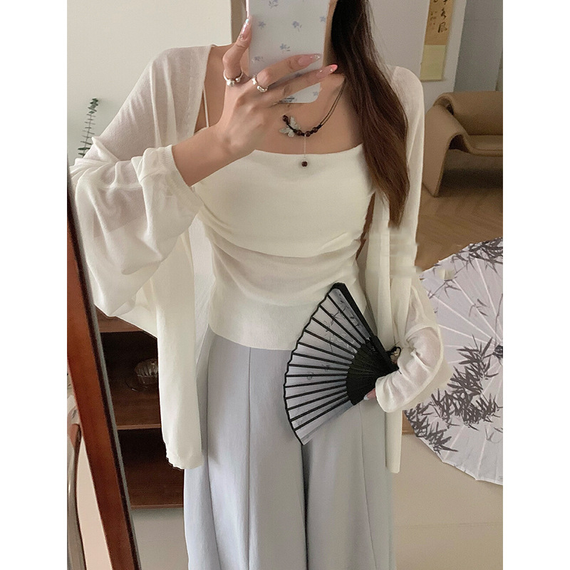Korean Style Gentle Style Thin Sunscreen Ice Silk Knitted Sweater Women’s Spring and Summer 2024 New Sling Outer Lazy Cardigan