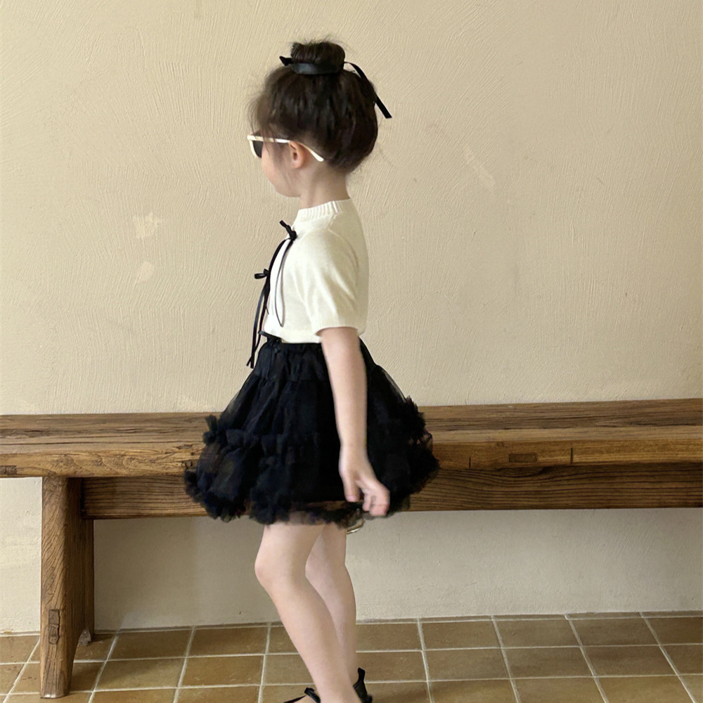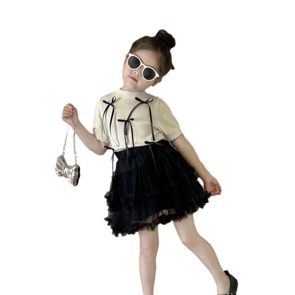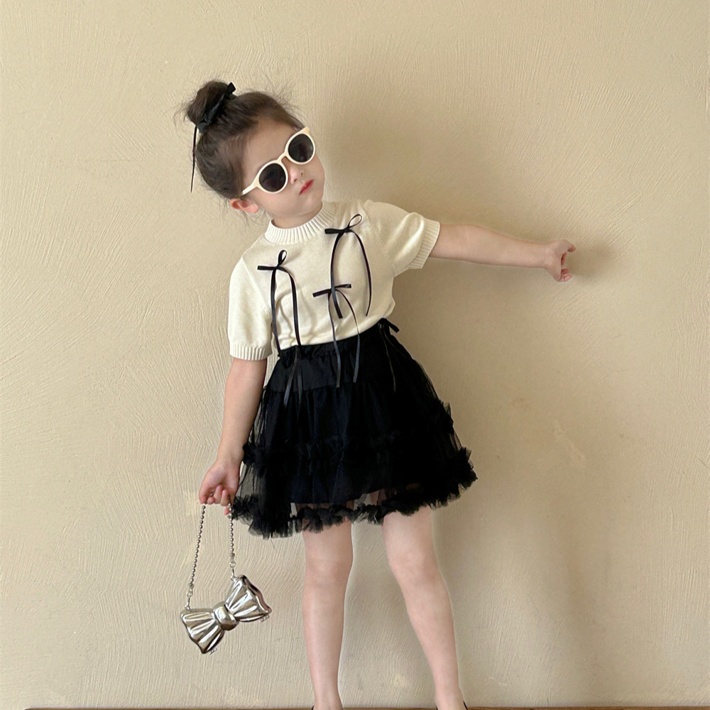 | nameOriginal | Korean Style Girls' Knitted T-Shirt 2024 Summer New Children's Bow Short-sleeved T-shirt Shanbaobao Casual Top |