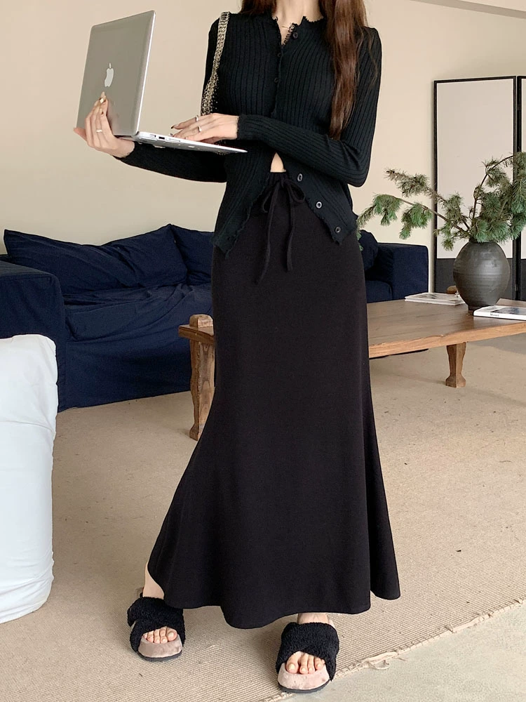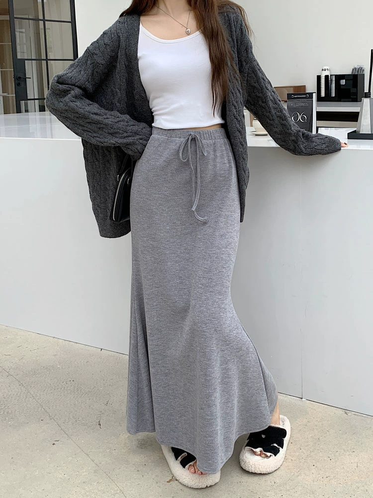 | nameOriginal | Korean style gray knitted skirt for women spring 2024 new temperament fashionable high waist strappy hip fishtail long skirt |