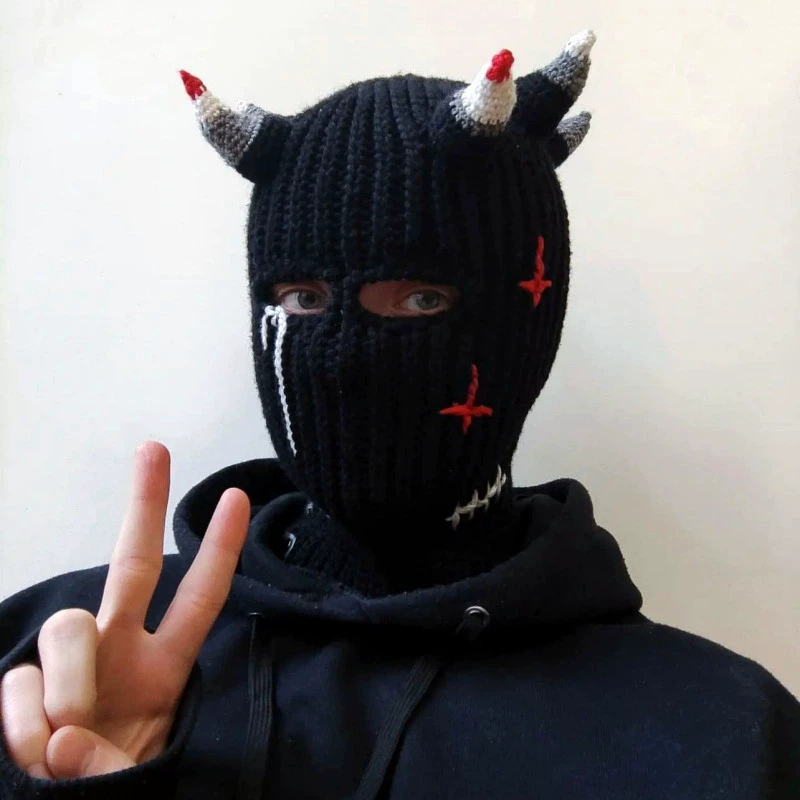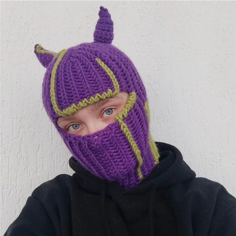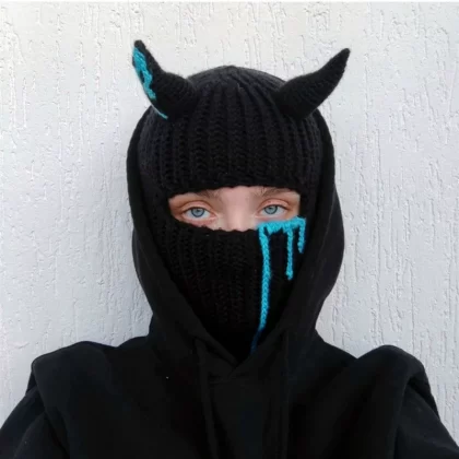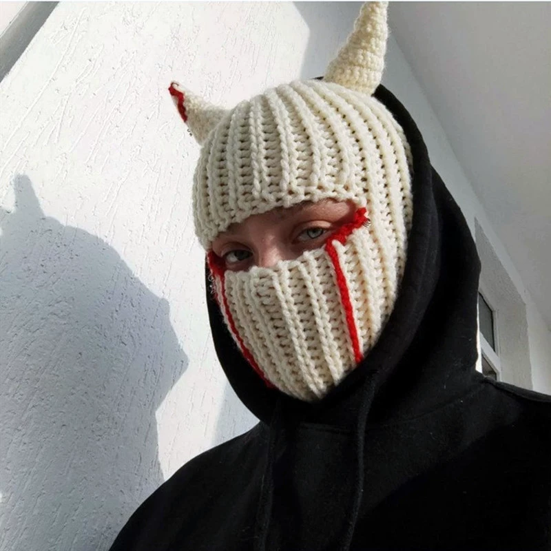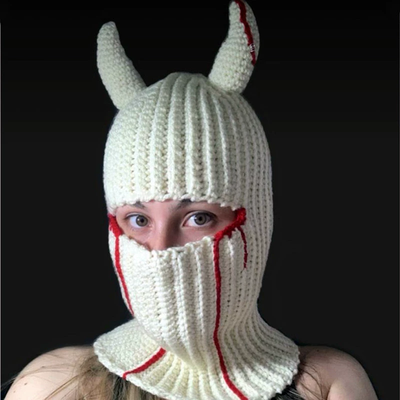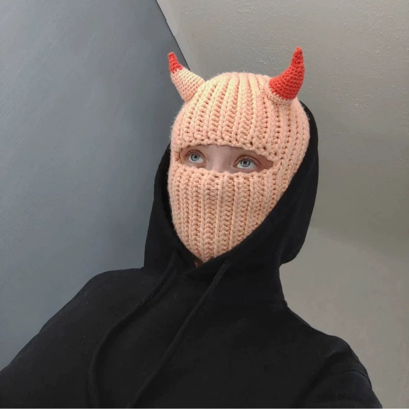 | nameOriginal | Korean style hand-knitted funny horn hat autumn and winter women's warm ear protection neck hood all-in-one dual-purpose parent-child woolen hat |