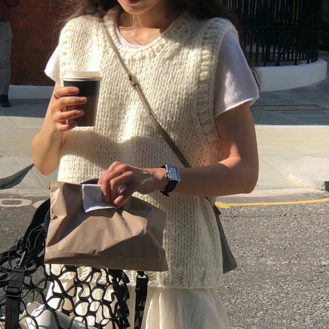 | nameOriginal | Korean style hand-woven thick wool knitted vest for women 2024 New Milky White round neck vest fashionable 97 |