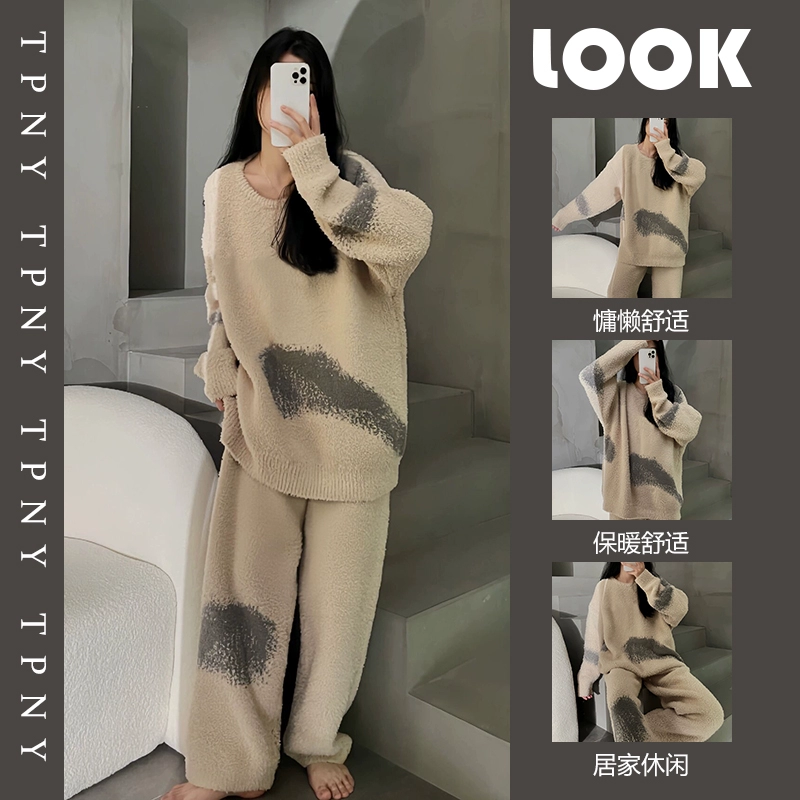 Korean high -end semi -velvet woman in winter thickened pajamas