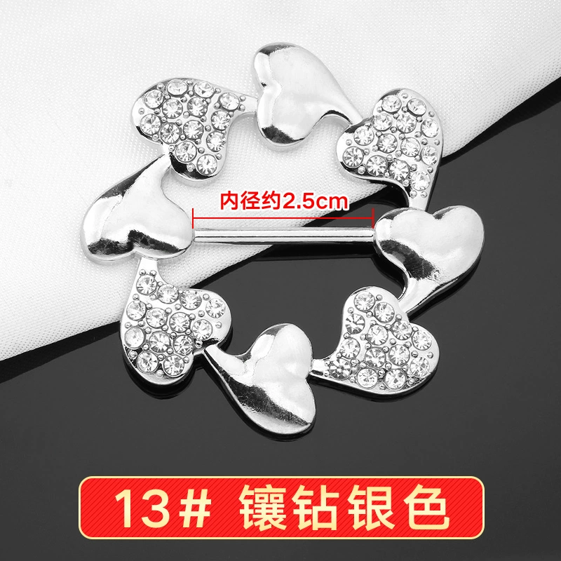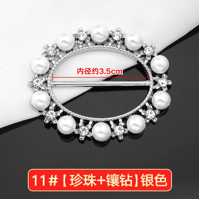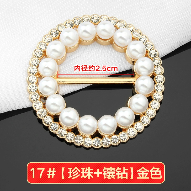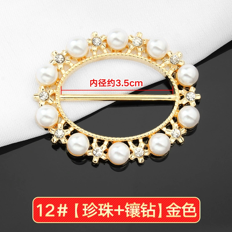 Korean high-end T-shirt round buckle versatile decorative scarf clothes hem pearl diamonds and knotted buttons