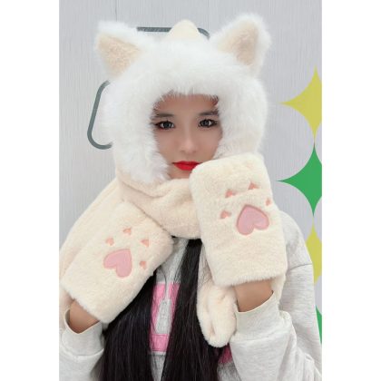 nameOriginal | Korean-style high-value cute little fox hat scarf all-in-one gloves three-piece outdoor cold-proof warm hat for children |