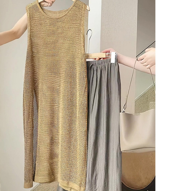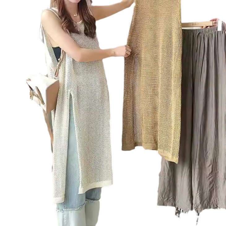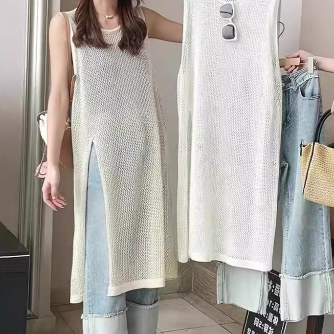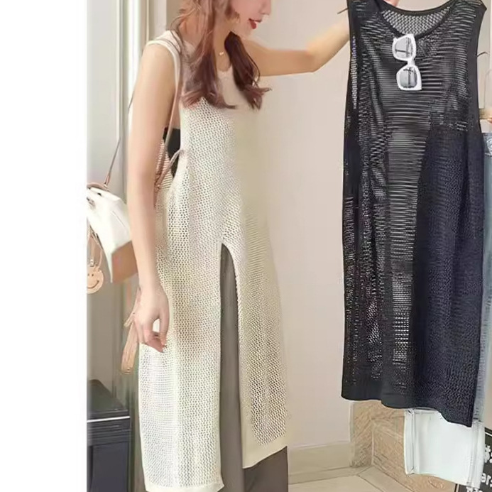| nameOriginal | Korean-style Hollow-out Hem Split Sleeveless Long Knitted Sweater Women's 24-year-old Summer Loose Thin Knitted Sling dress |