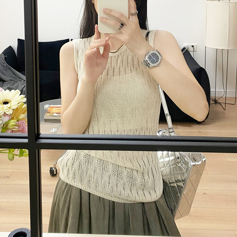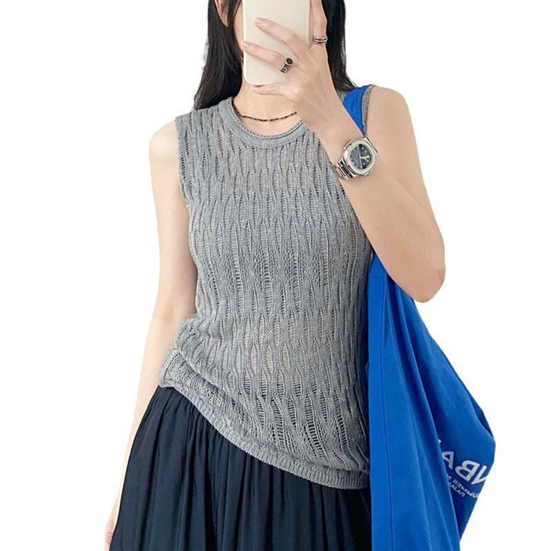 | nameOriginal | Korean Style Hollow Vest 2024 Summer New Round Neck Sweater High-end Sense Casual Short Sleeveless Top Cross-border |