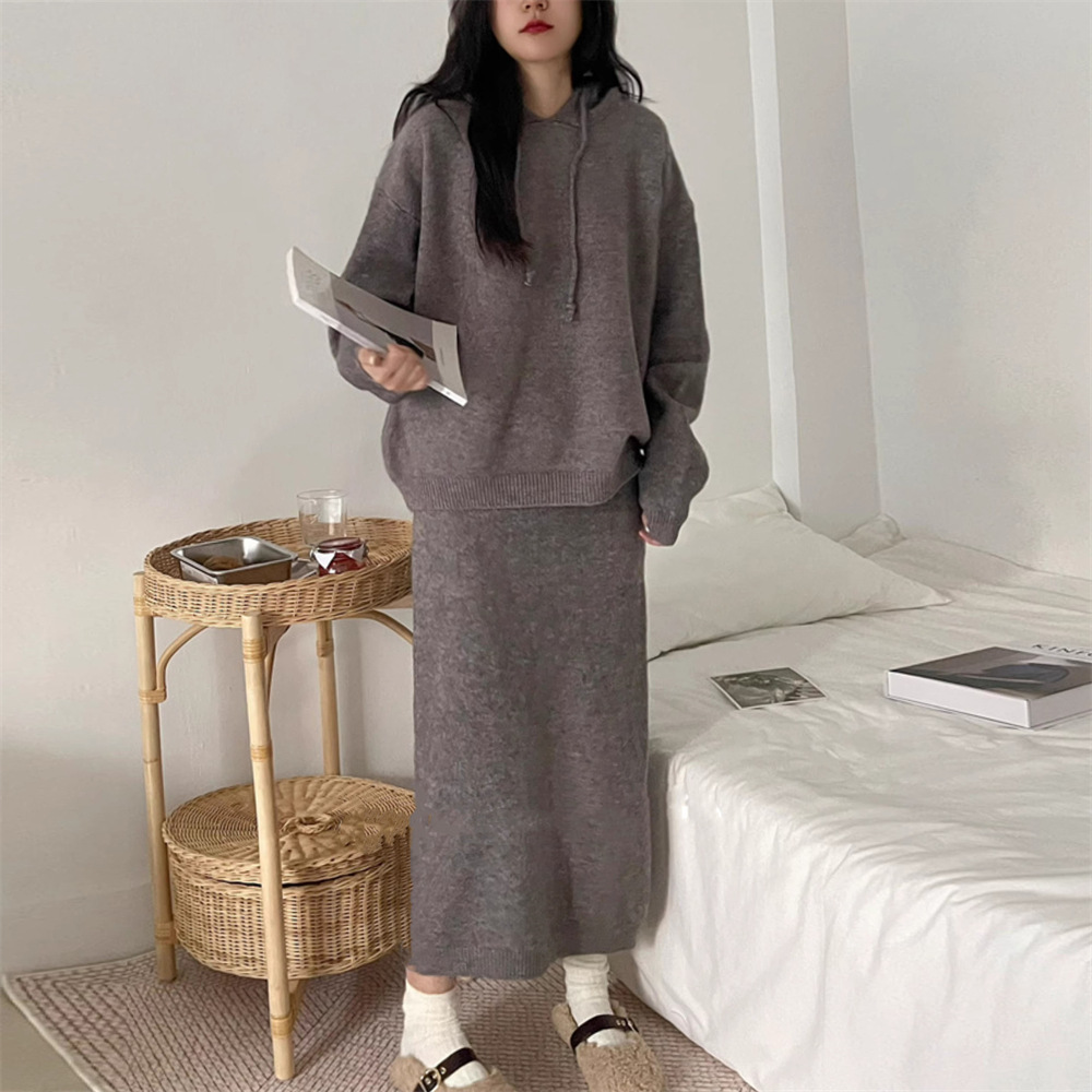 | nameOriginal | Korean style hooded bottoming knitted sweater skirt suit women's autumn and winter New inner sweater two pieces suit women's |