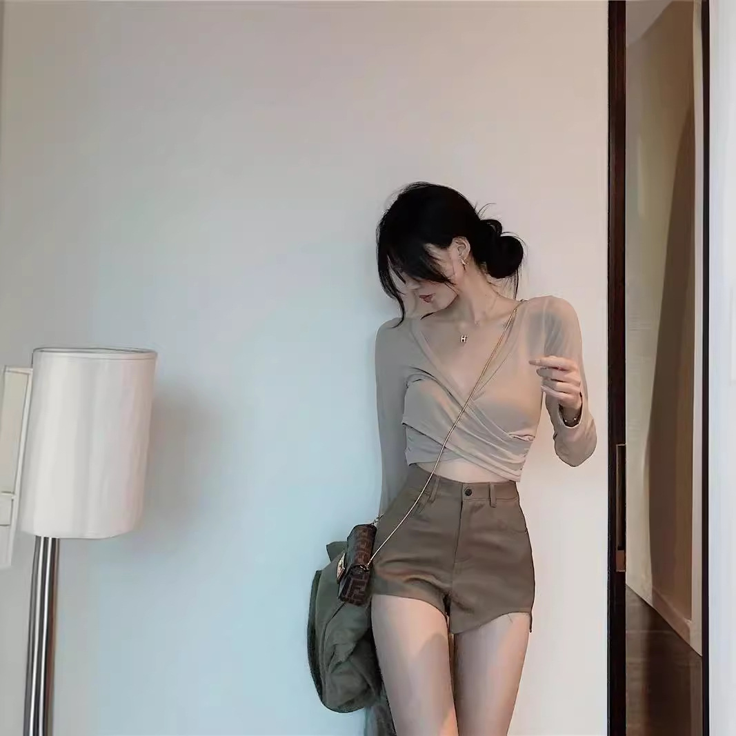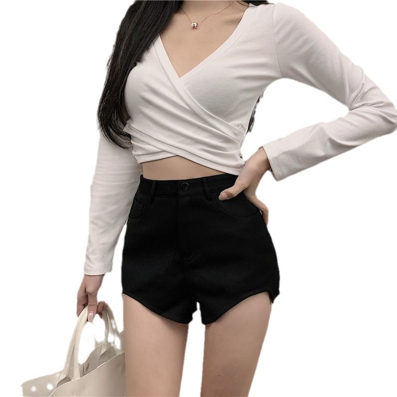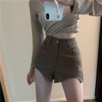 Korean Style Hot Girl Boots Pants Slim-fit A- line Pants Irregular High Waist Suit Shorts Women’s Summer Casual Pants brown Pants