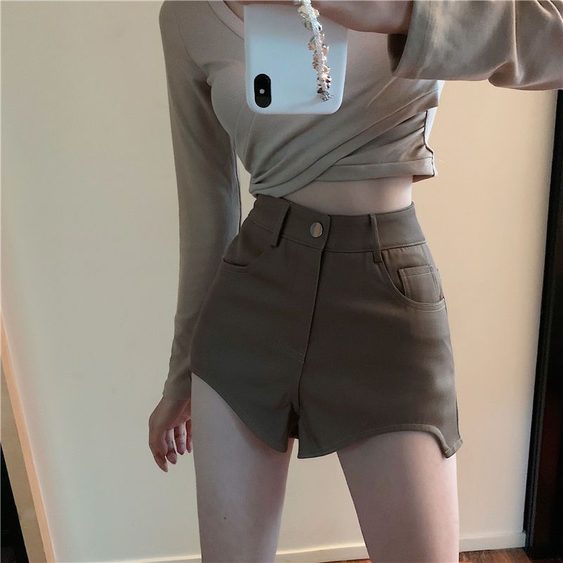 Korean Style Hot Girl Boots Pants Slim-fit A- line Pants Irregular High Waist Suit Shorts Women's Summer Casual Pants brown Pants