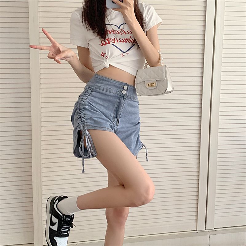 | nameOriginal | Korean Style Hot Girl Drawstring Jeans Women's Summer 2024 New High Waist Design Sense Niche Denim Hot Short Pants |