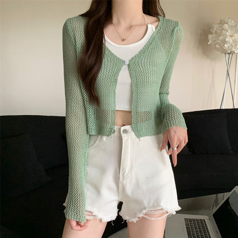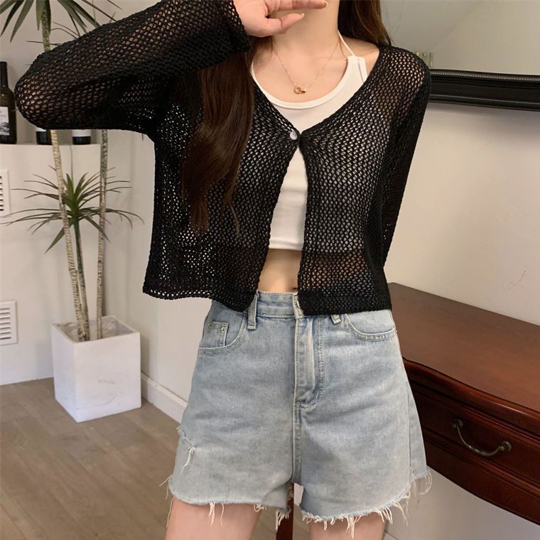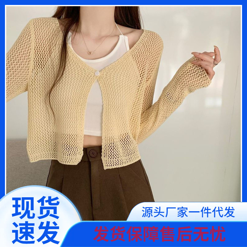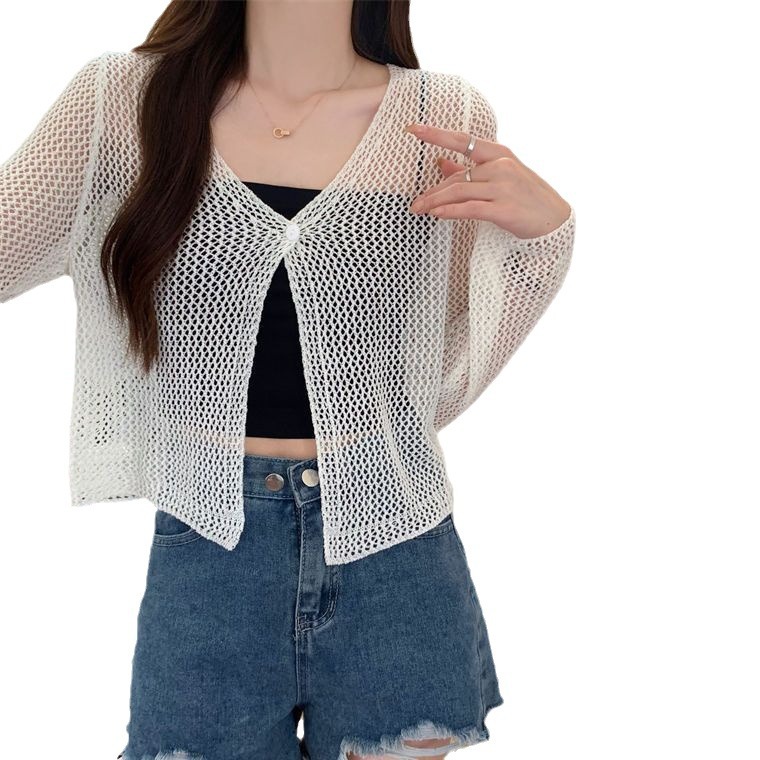 | nameOriginal | Korean Style Ice Silk Hollow Knitted Sunscreen Cardigan Women's Outer Summer Thin Short Blouse Outer Wear Air Conditioning Coat Top |