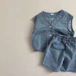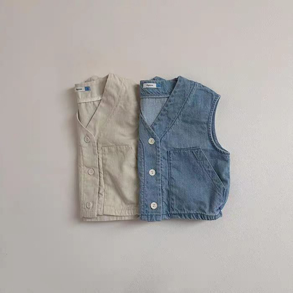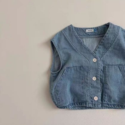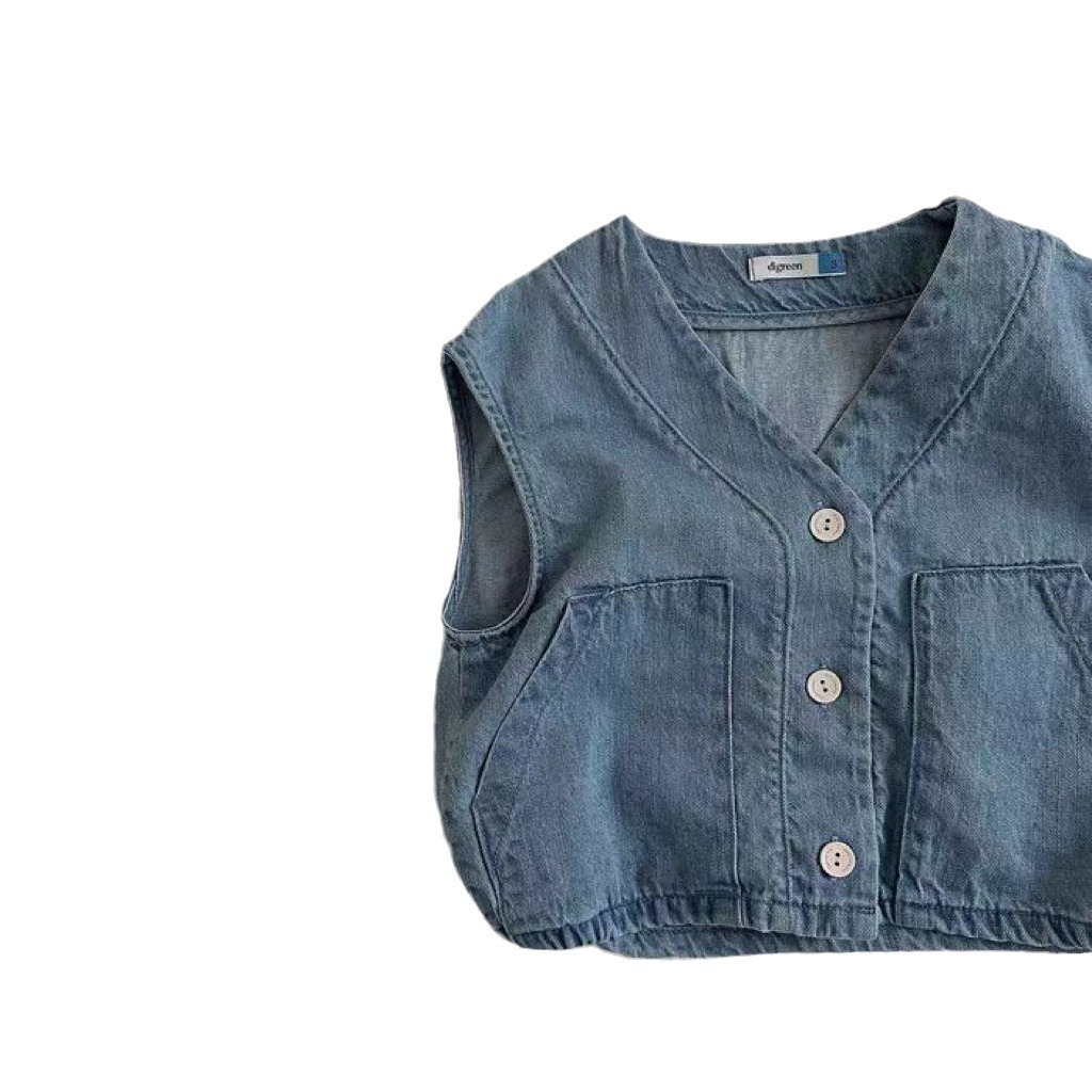 Korean Style Ins Denim Vest for Spring and Autumn and Summer All-Match Style Breathable Cotton Fashionable Sleeveless Outer Vest for Baby Boys and Girls