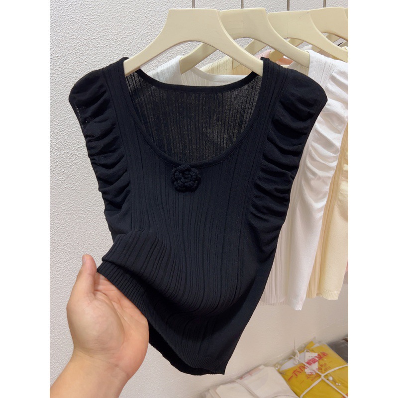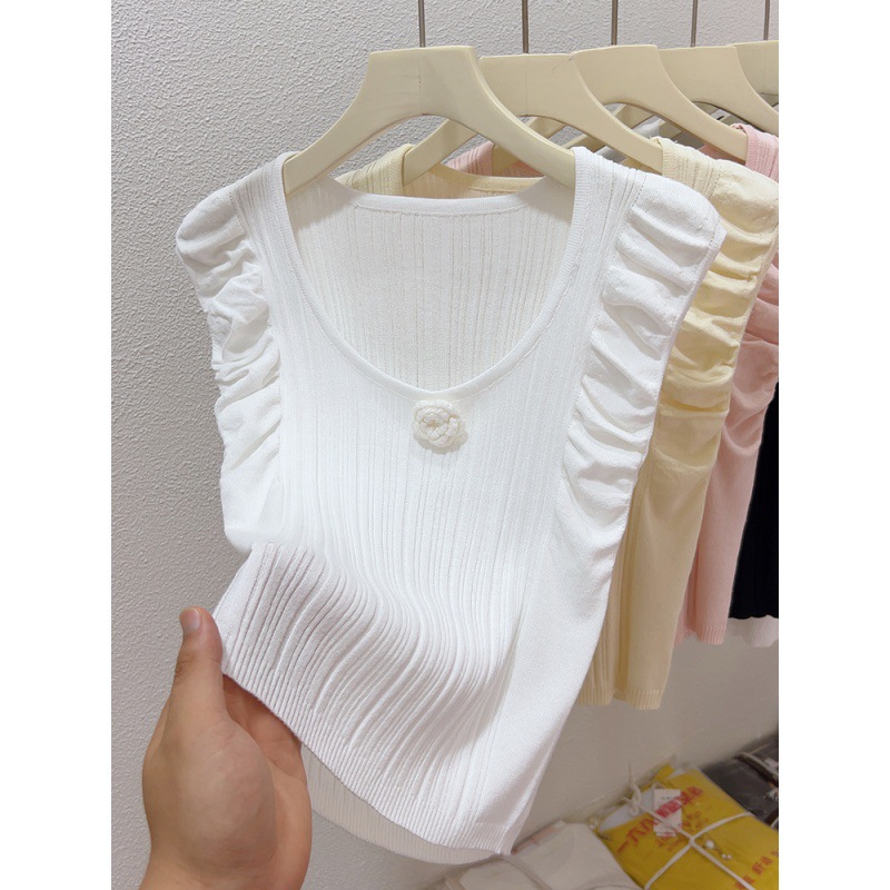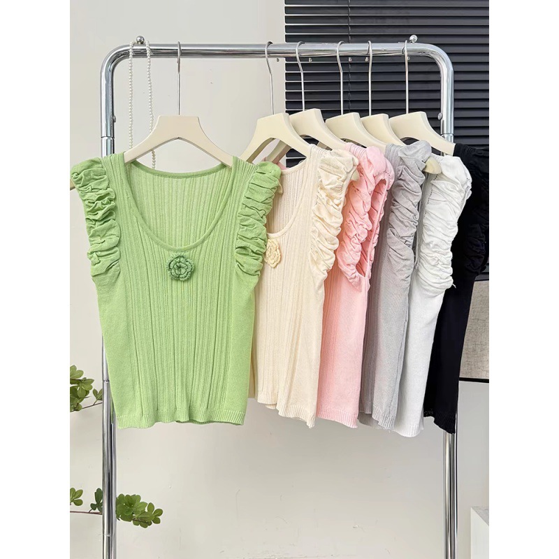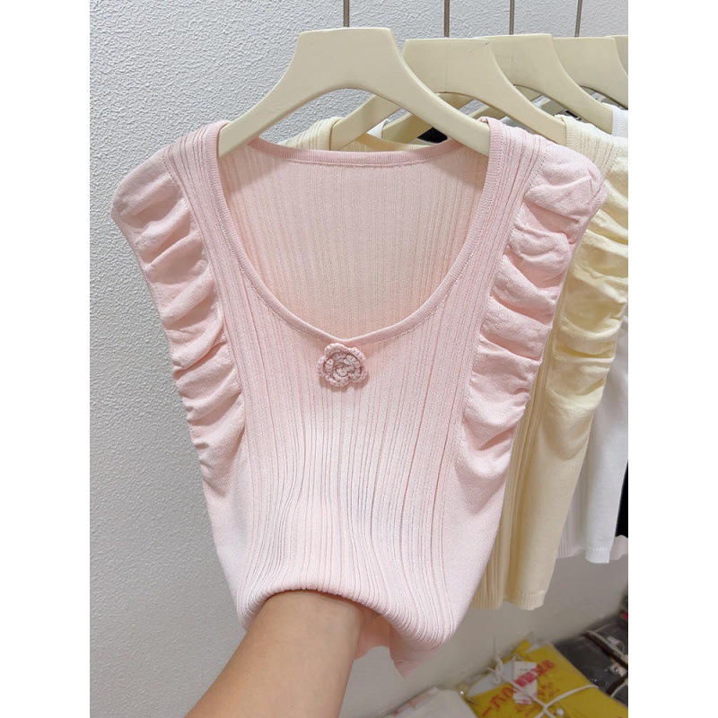 | nameOriginal | Korean Style Ins Flower Puff Sleeve T-Shirt Women's Summer 2024 New Design Sense All-match Slim-fit Knitted Short Top |
