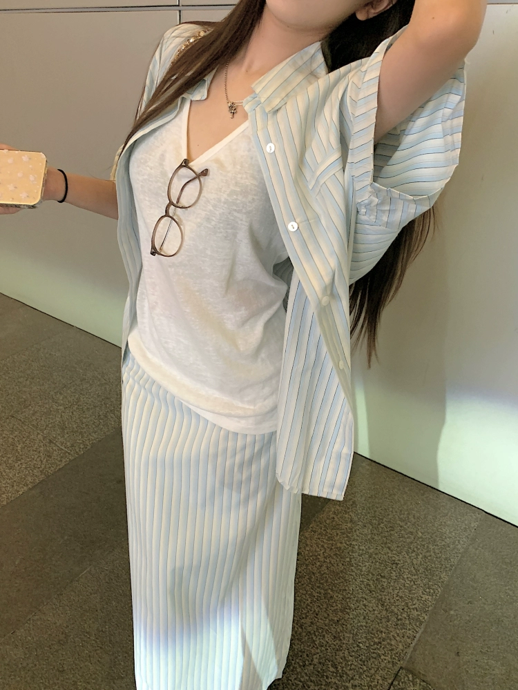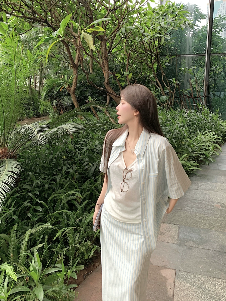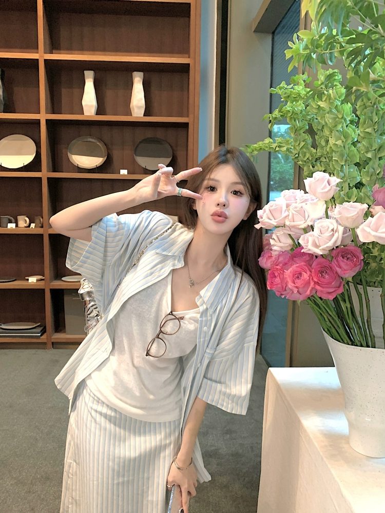 | nameOriginal | Korean style ins holiday style fashion suit for women summer 2024 new style vest striped shirt skirt three-piece set |