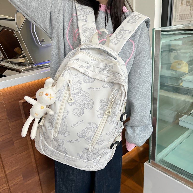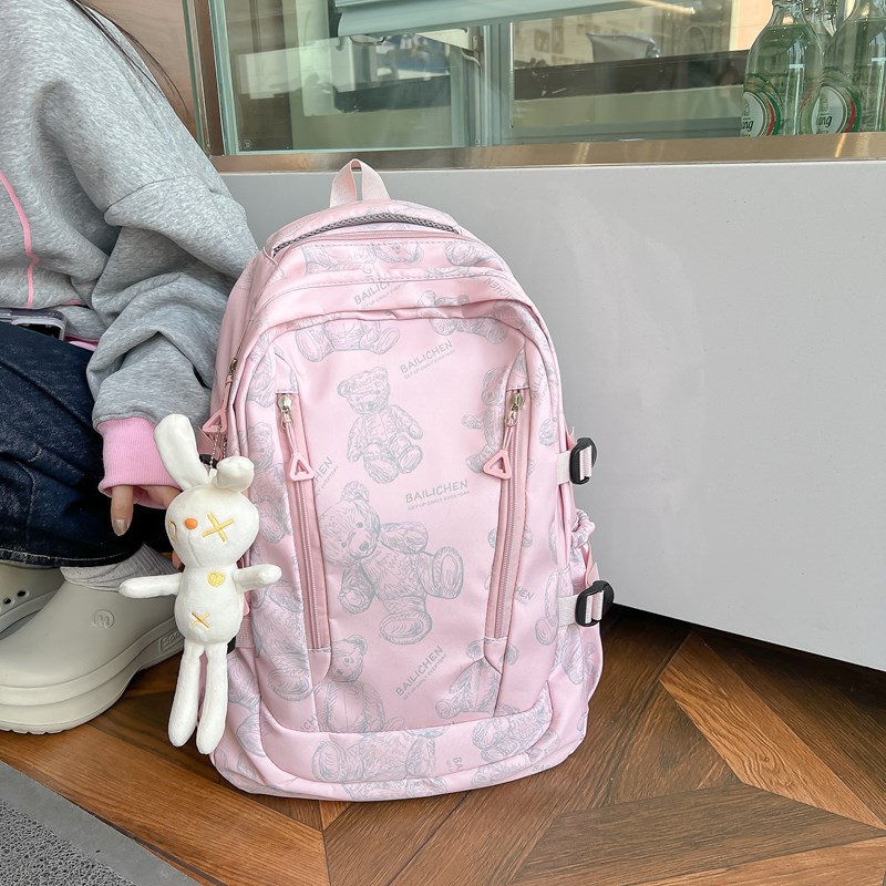 Korean-style Ins Large Capacity Student Schoolbag Women's Cute Bear Printed Fashionable Backpack Junior Senior high school Campus Backpack