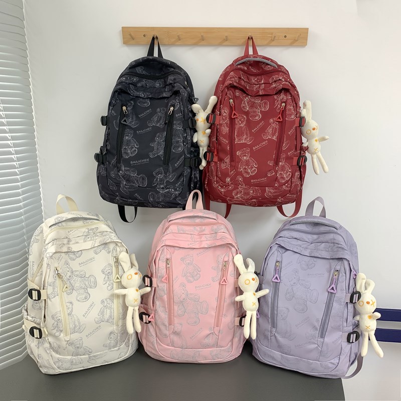 Korean-style Ins Large Capacity Student Schoolbag Women’s Cute Bear Printed Fashionable Backpack Junior Senior high school Campus Backpack