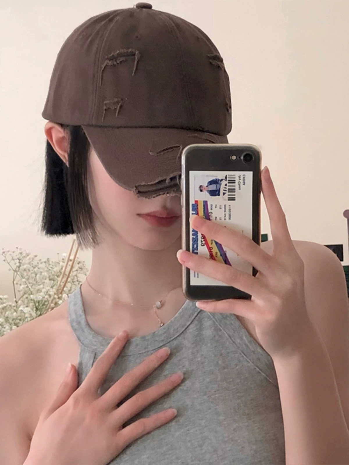 | nameOriginal | Korean style ins solid color distressed hole duck cap for women spring and summer fashion versatile street sunshade curved brim baseball cap |