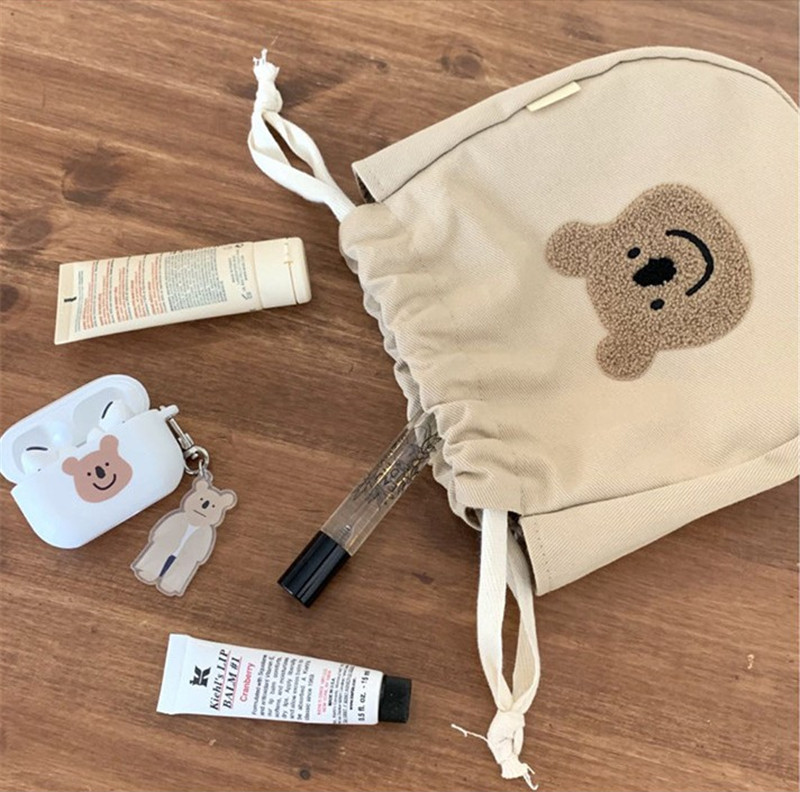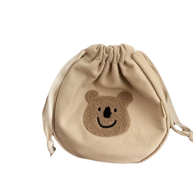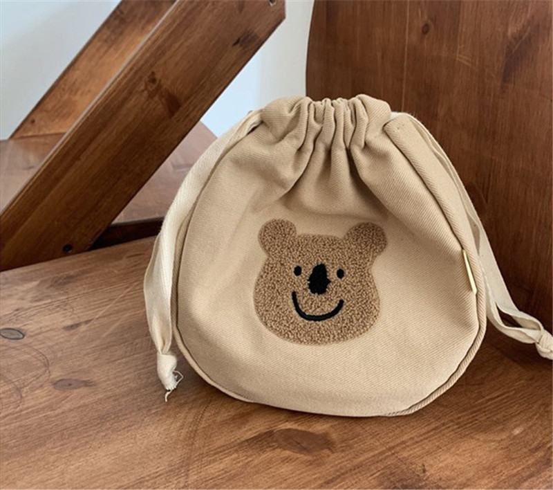 Korean Style INS Style Bear Drawstring Smiley Bag Children's Handbag Bucket Bag Parent-Child Bag Cosmetic Bag