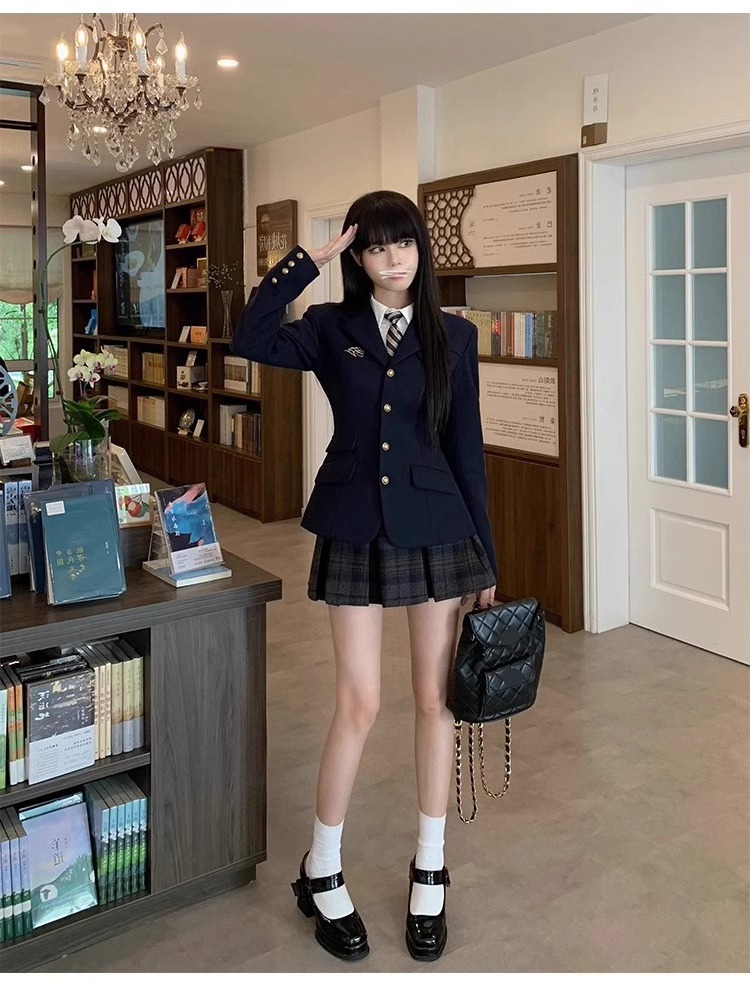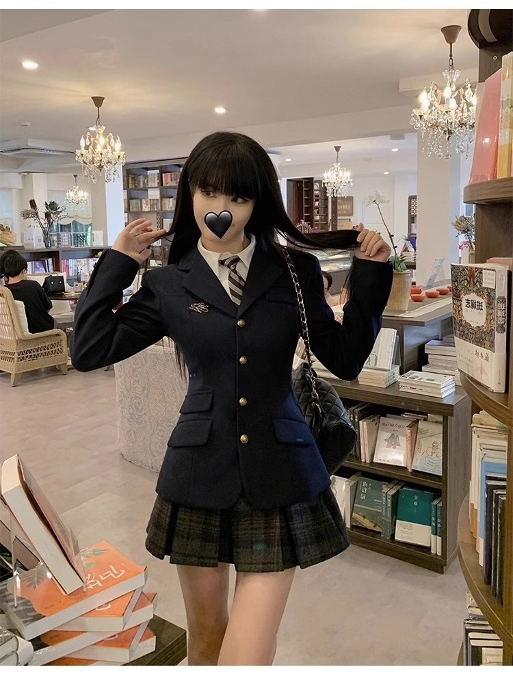 | nameOriginal | Korean style jk uniform college style woolen suit suit women's spring and autumn suit jacket plaid pleated skirt three-piece suit |