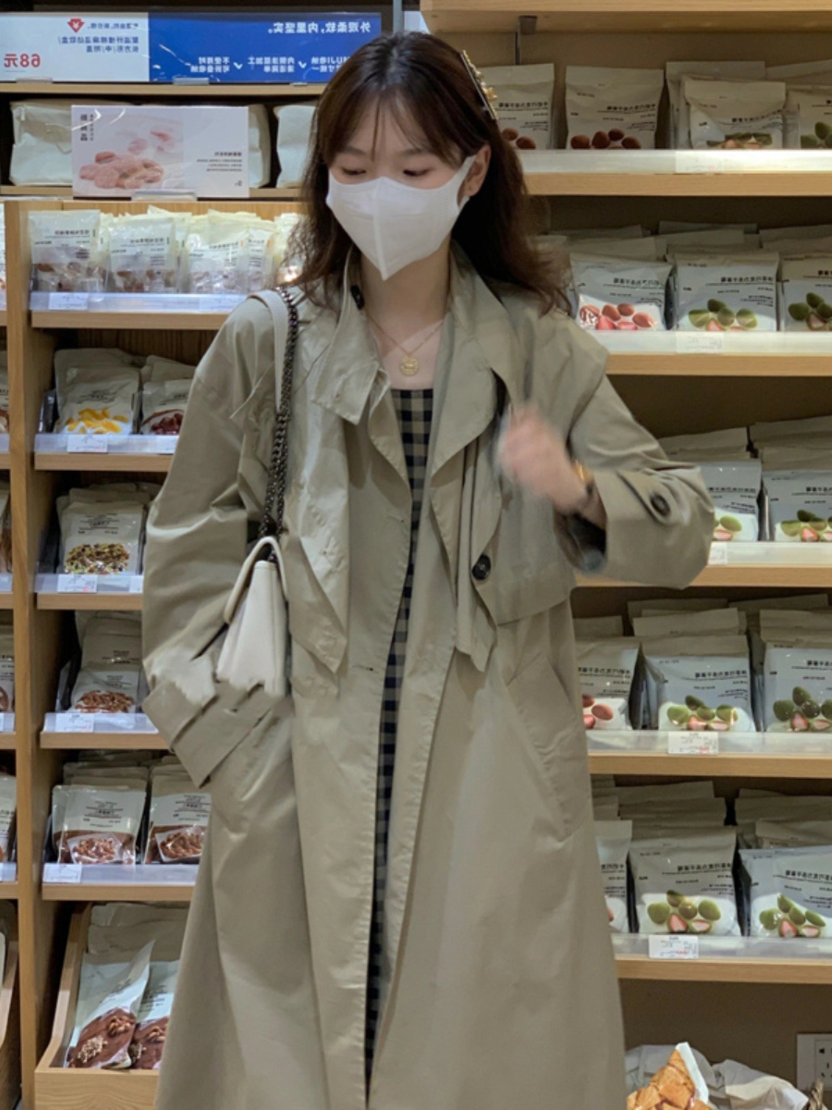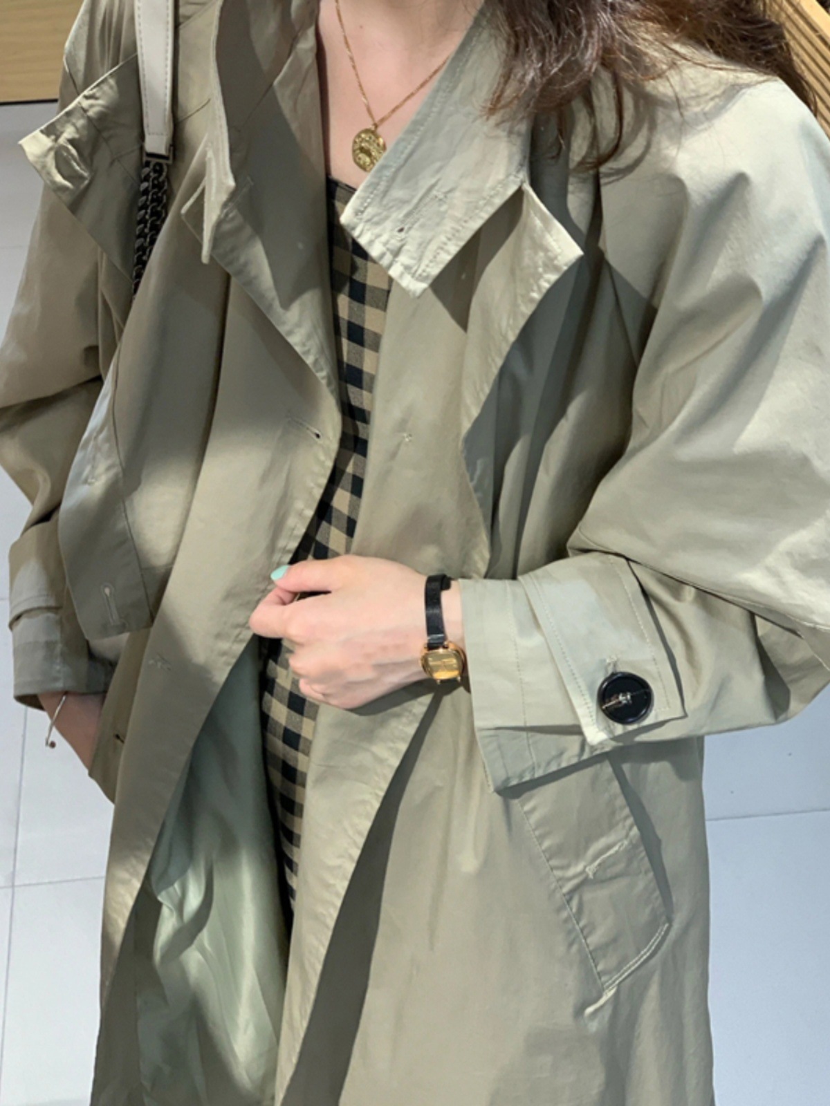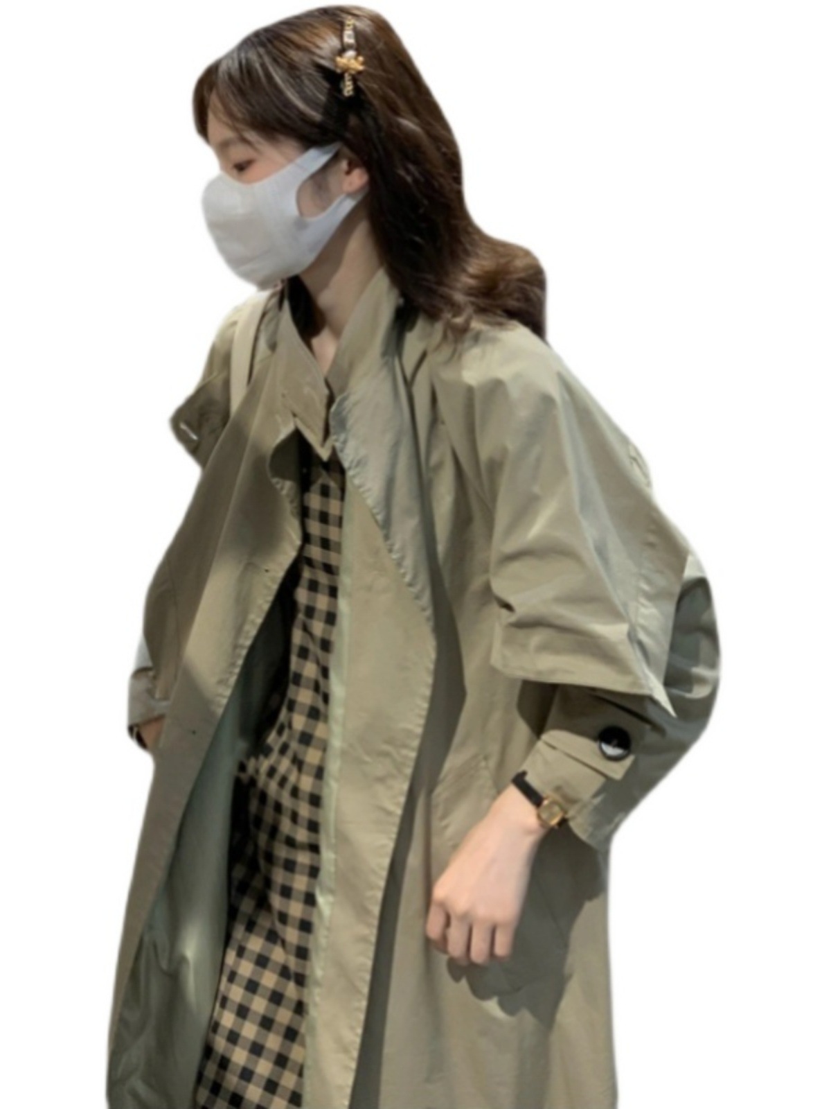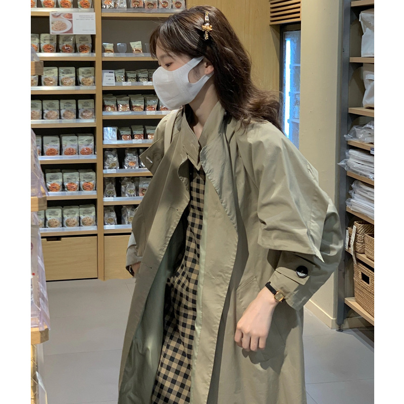 | nameOriginal | Korean style khaki green trench coat for women 2024 Spring and Autumn New Hepburn style loose temperament casual mid-length overcoat |