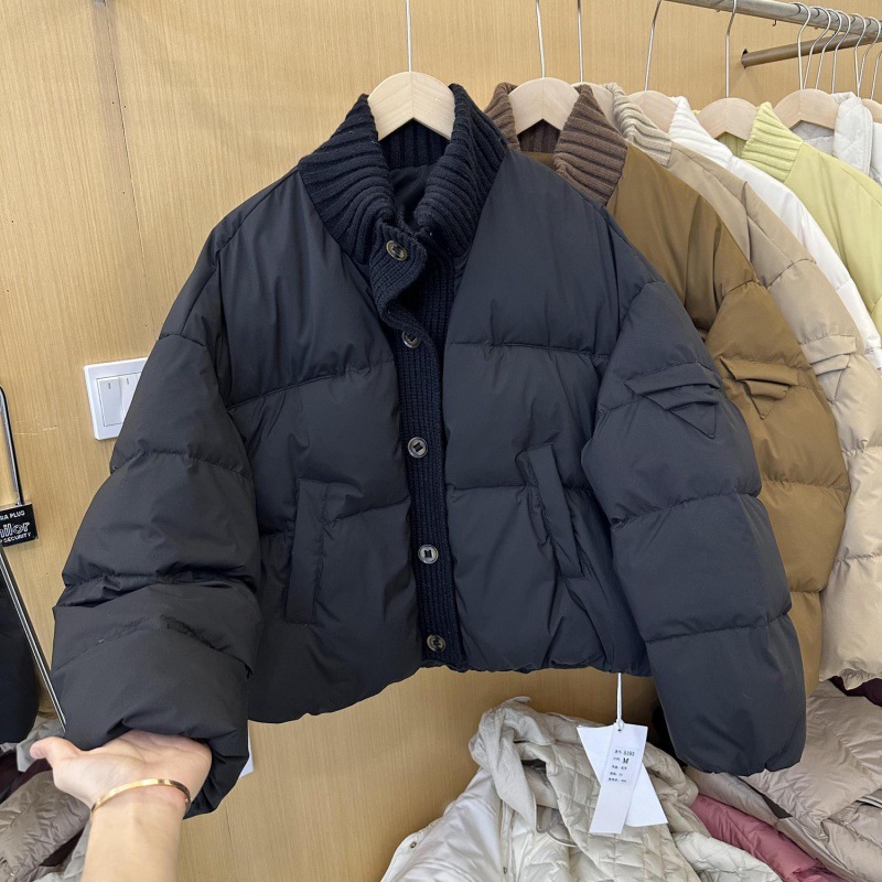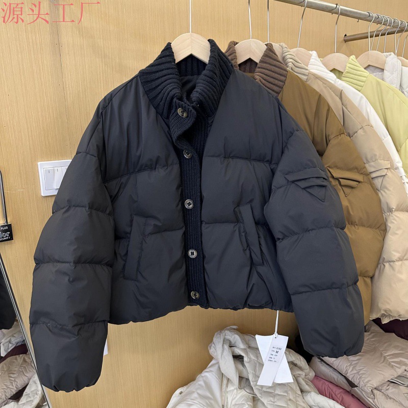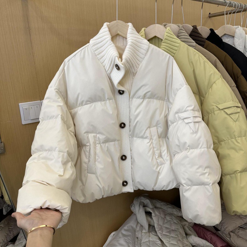 Korean style knitted stitching stand collar short down jacket for women 2024 Winter new warm white duck down bread coat