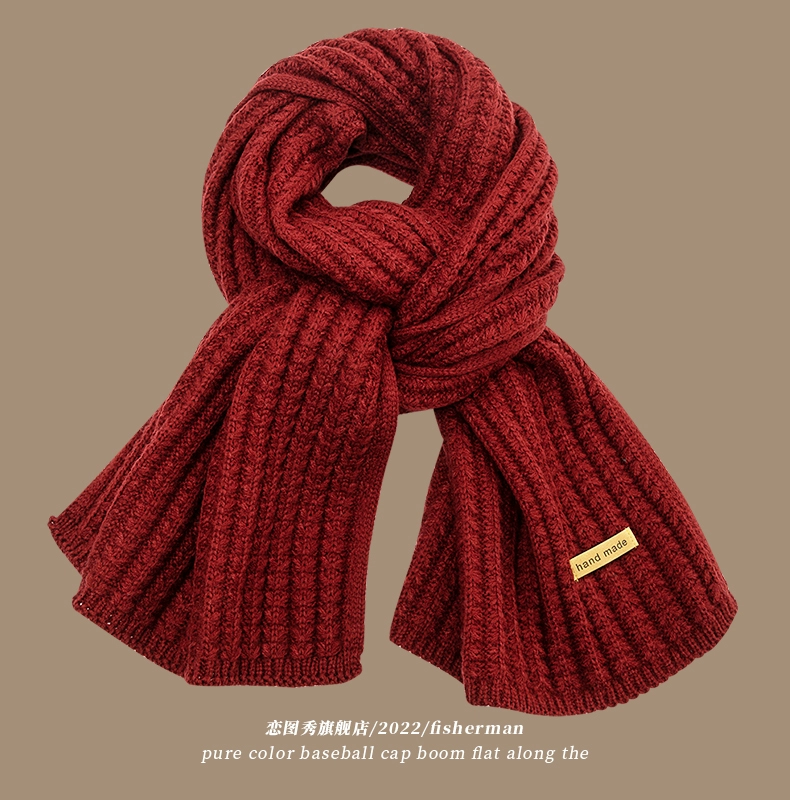 | nameOriginal | Korean style knitted wool red scarf for women winter 2022 new versatile high-end warm couple scarf student |