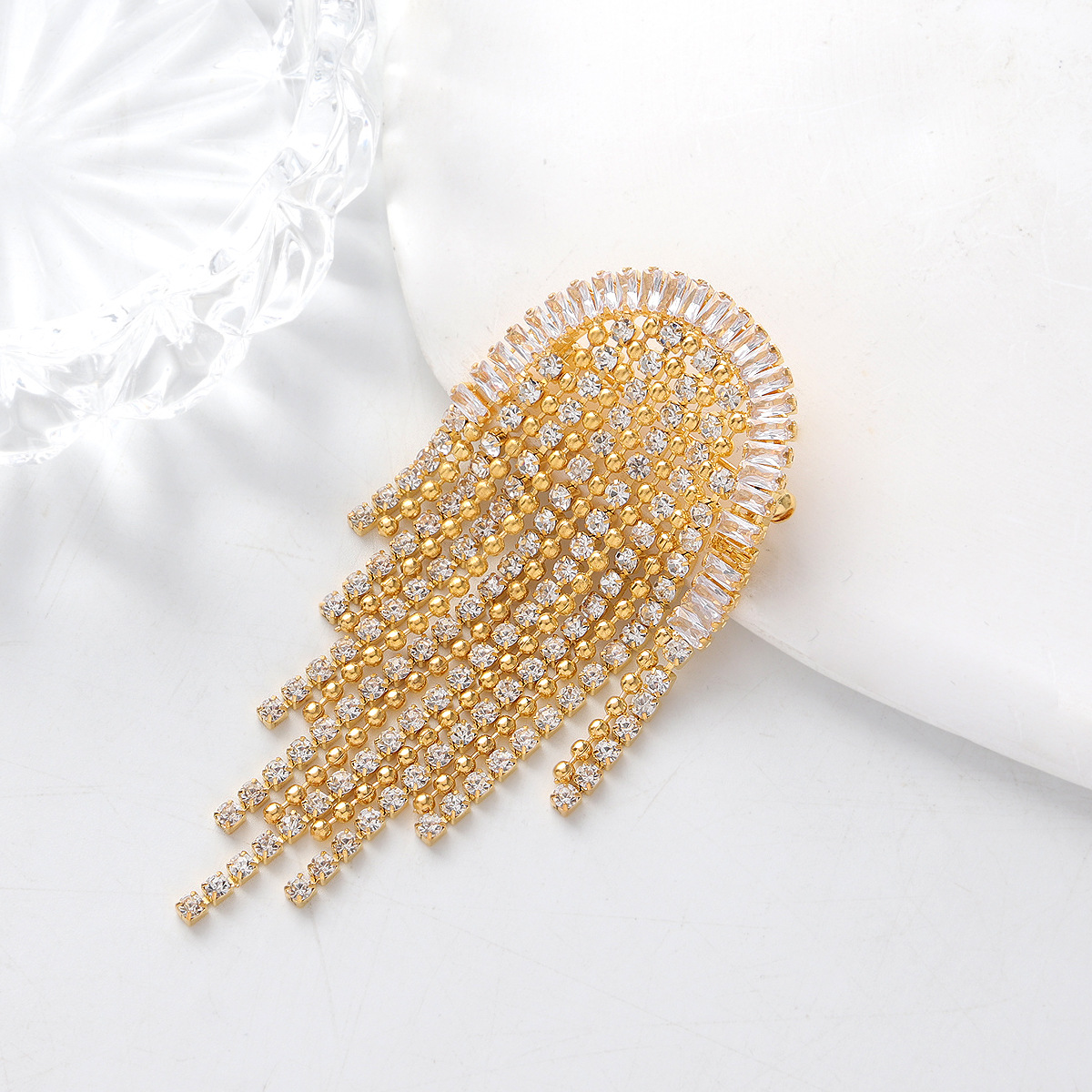 Korean Style Korean Style Flash Diamond Tassel Brooch Women's Corsage Pin Design Sense Niche Suit Luxury Elegant High-end Sense