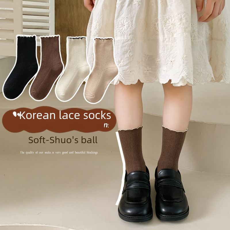 | nameOriginal | Korean style lace socks children's socks spring and autumn wooden ear pile socks ins style all-match mid-calf socks baby socks |