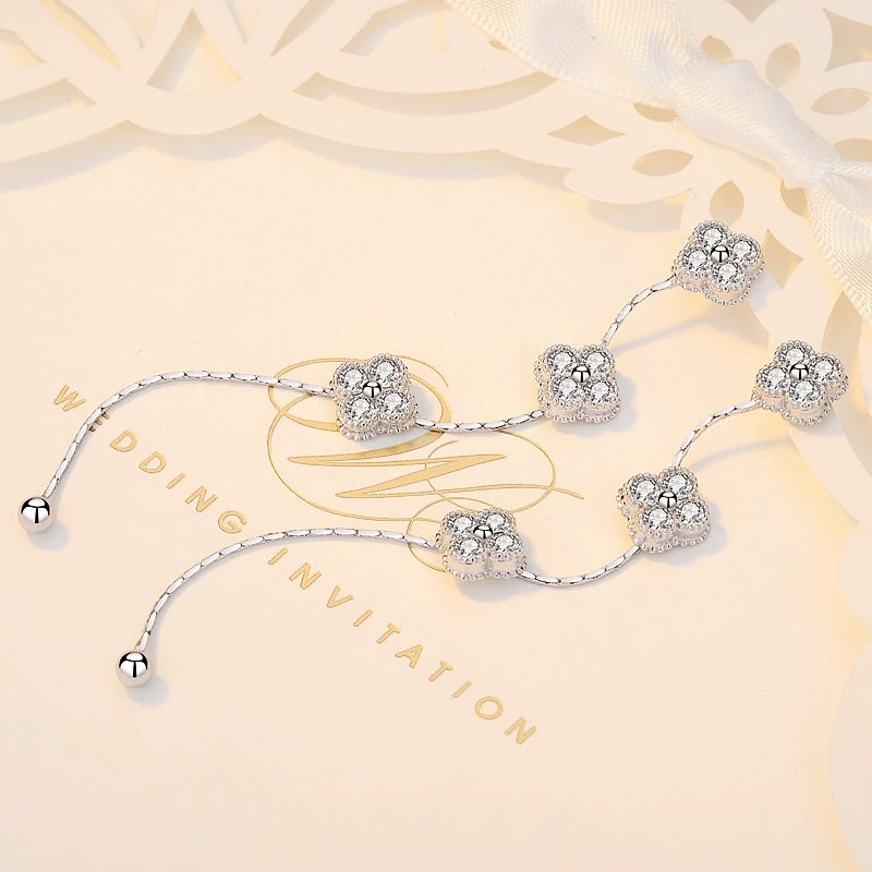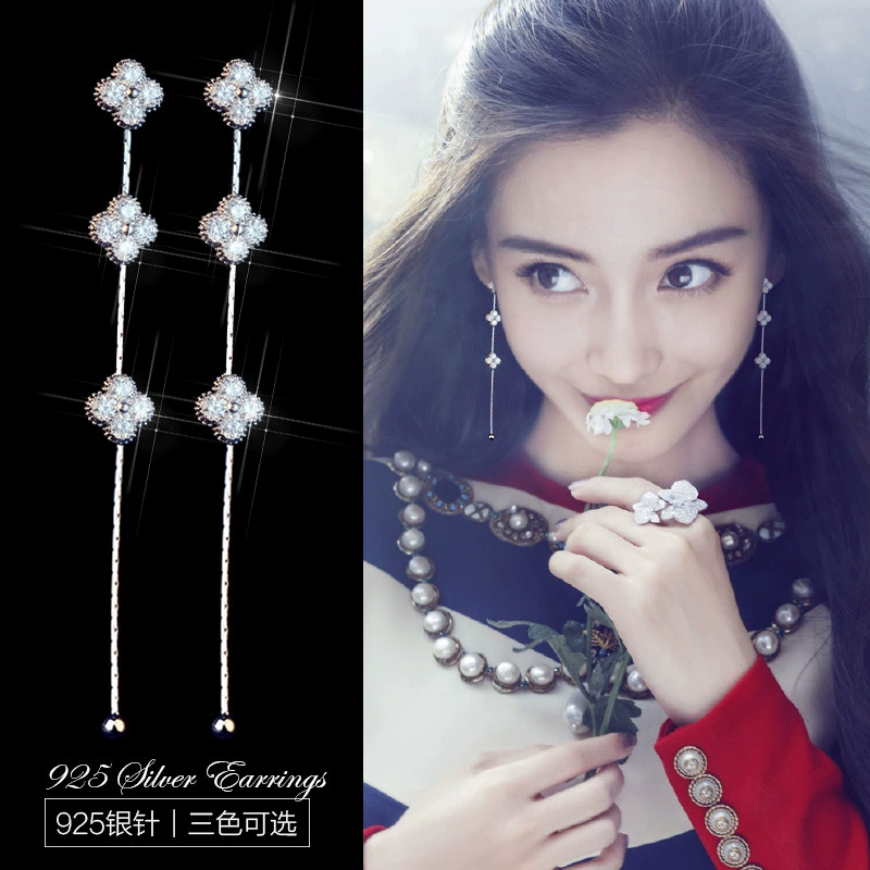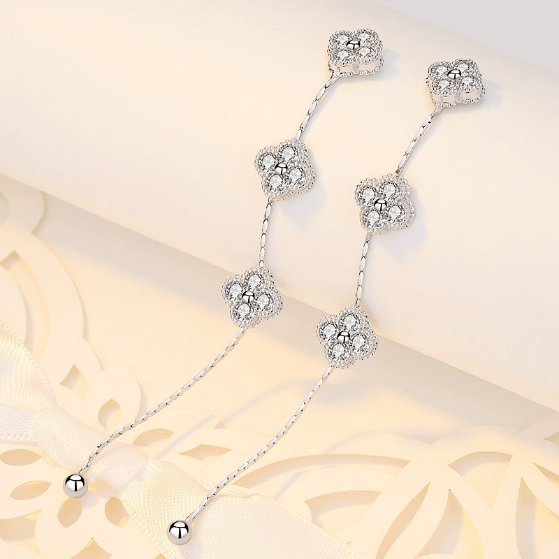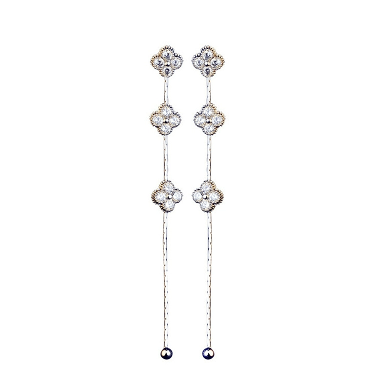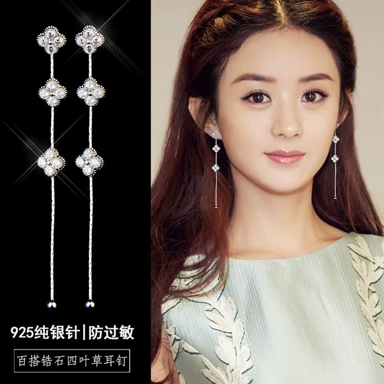 | nameOriginal | Korean style ladylike personalized zircon earrings, four-leaf clover long earrings, tassel 925 sterling silver needle earrings |