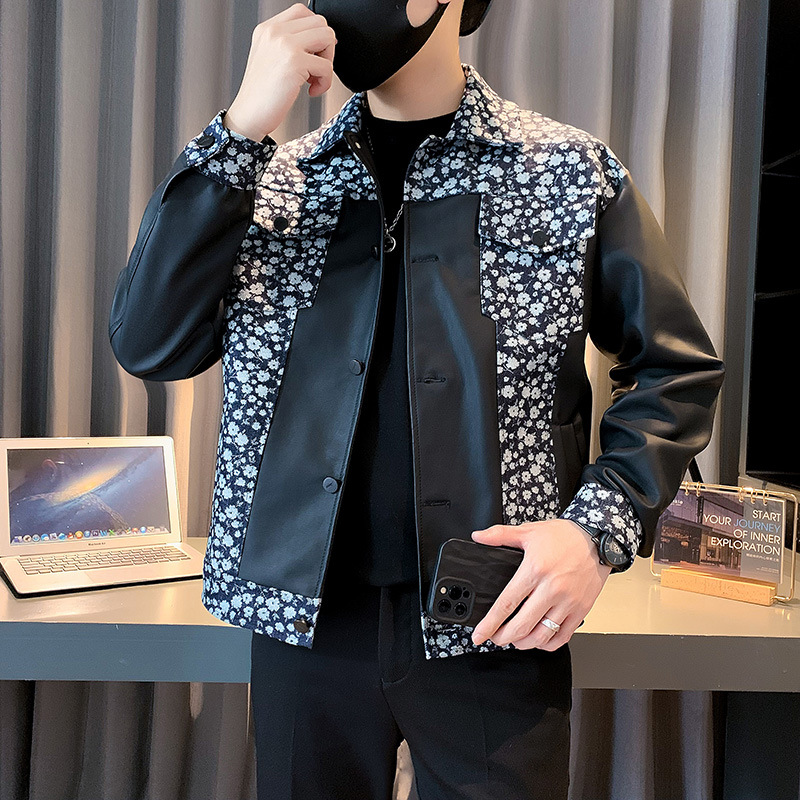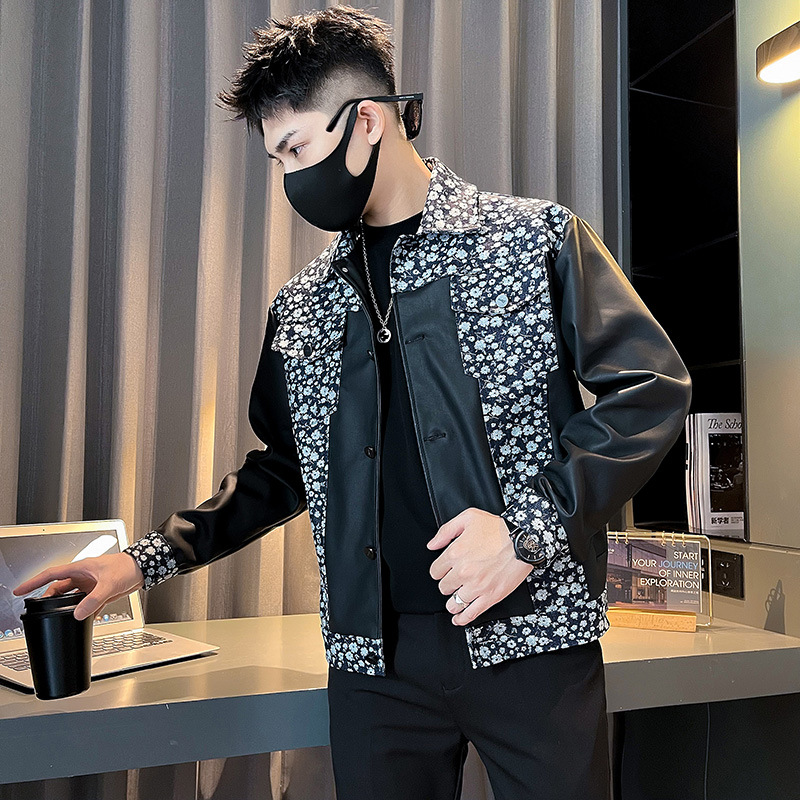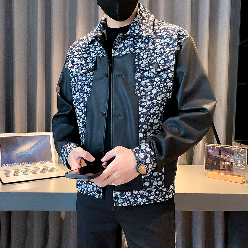 Korean style lapel color stitching contrast color design jacket workwear jacket