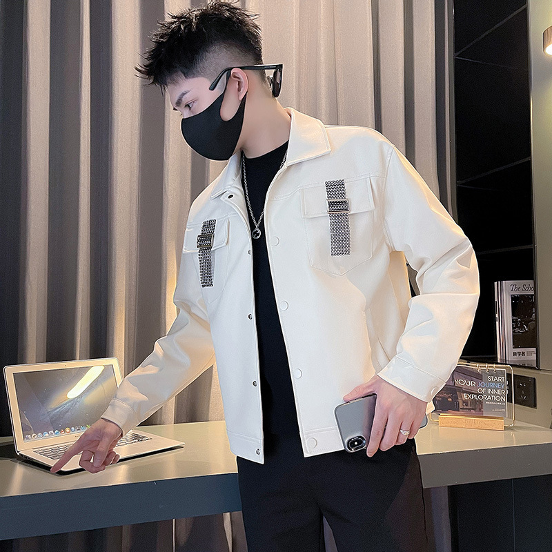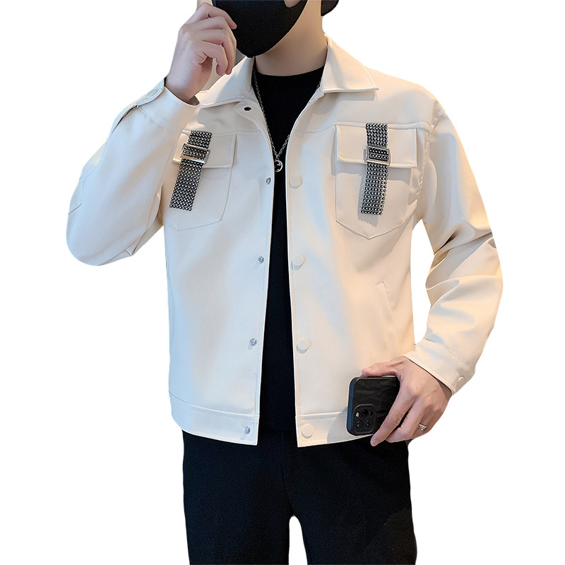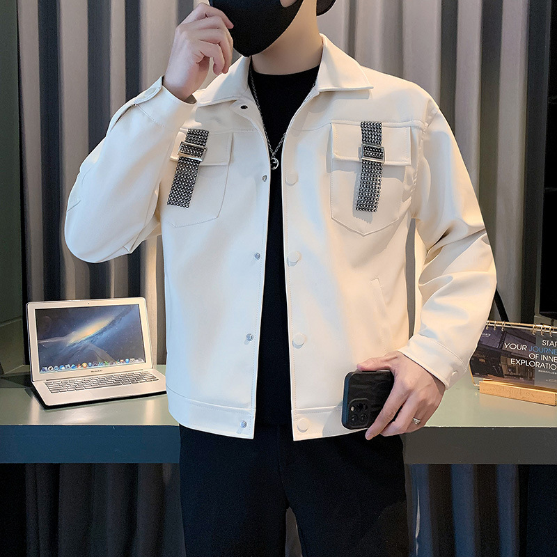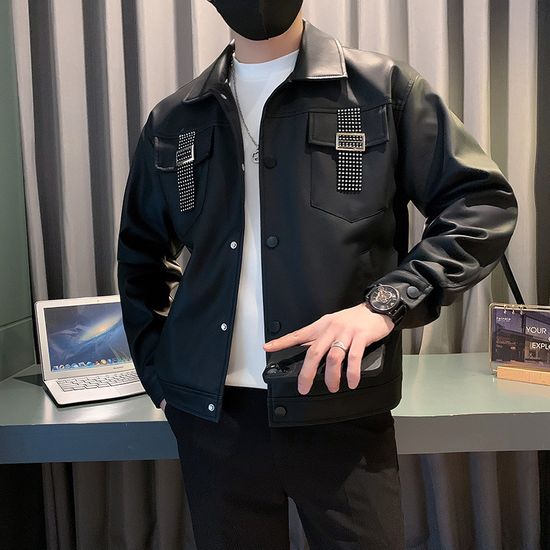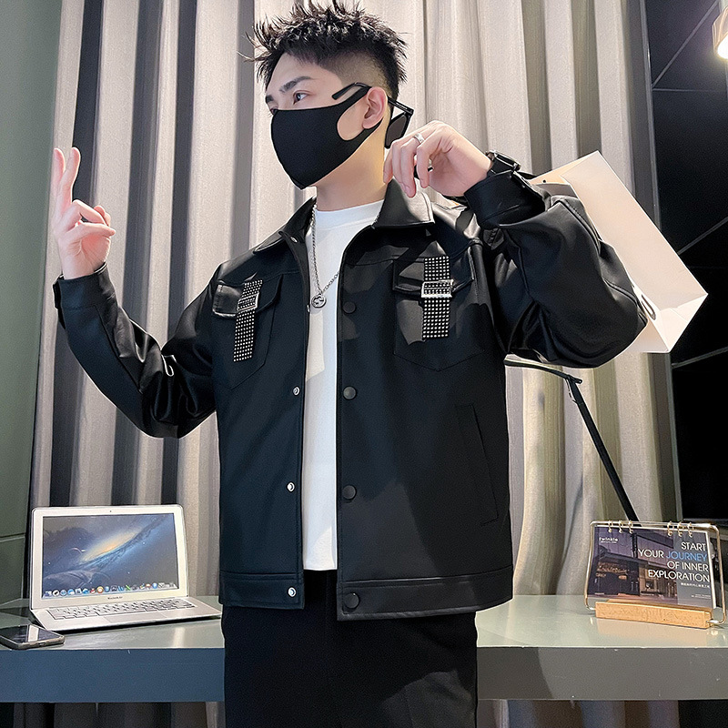 | nameOriginal | Korean style lapel solid color stitching design Pu Shuai jacket workwear jacket |