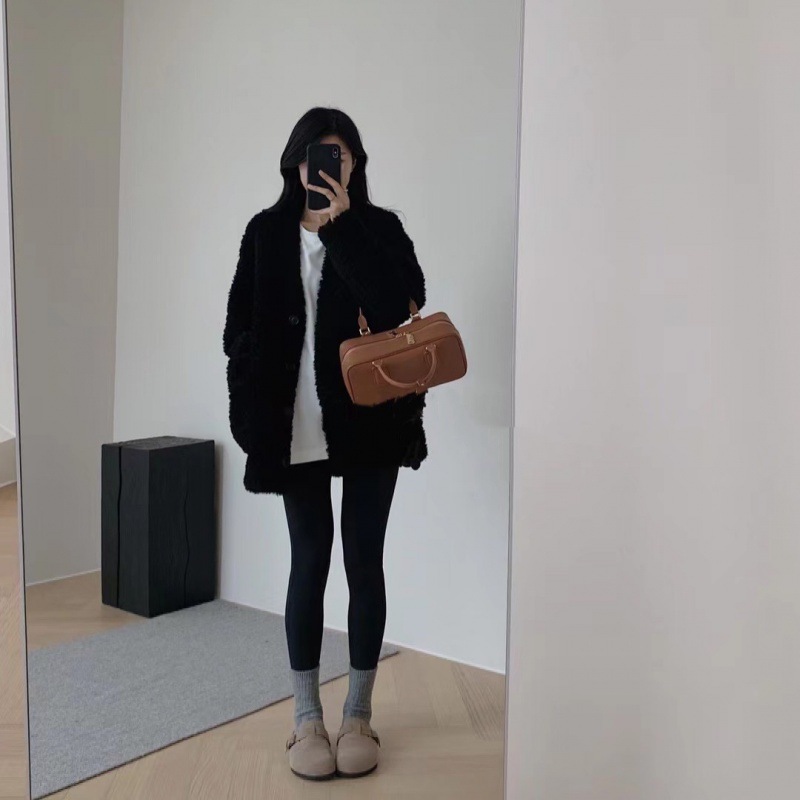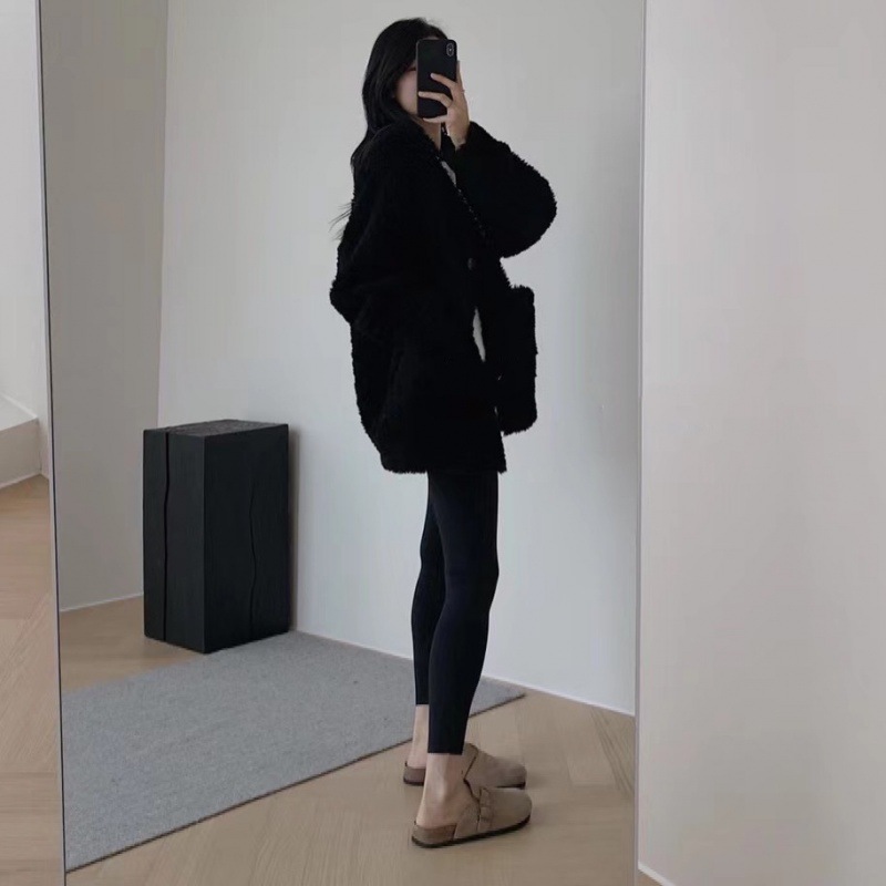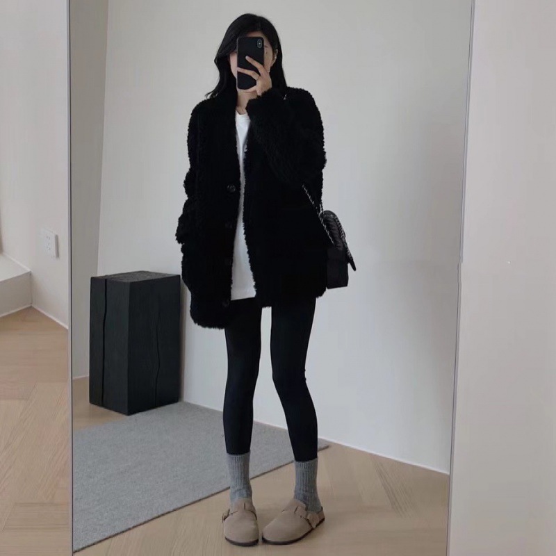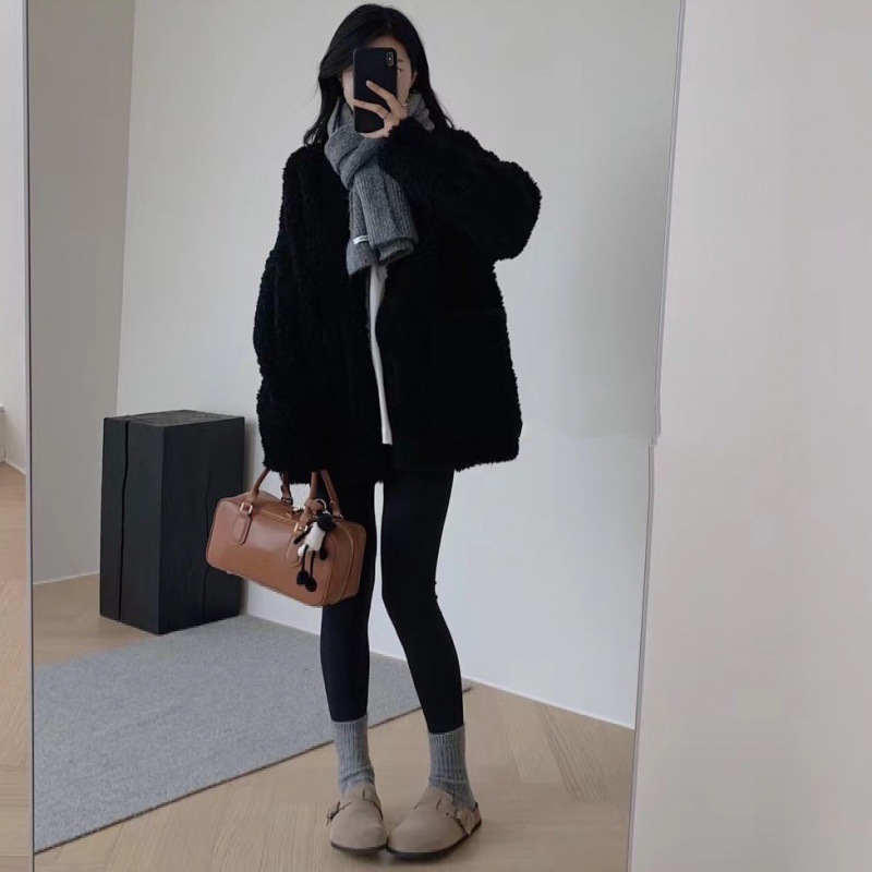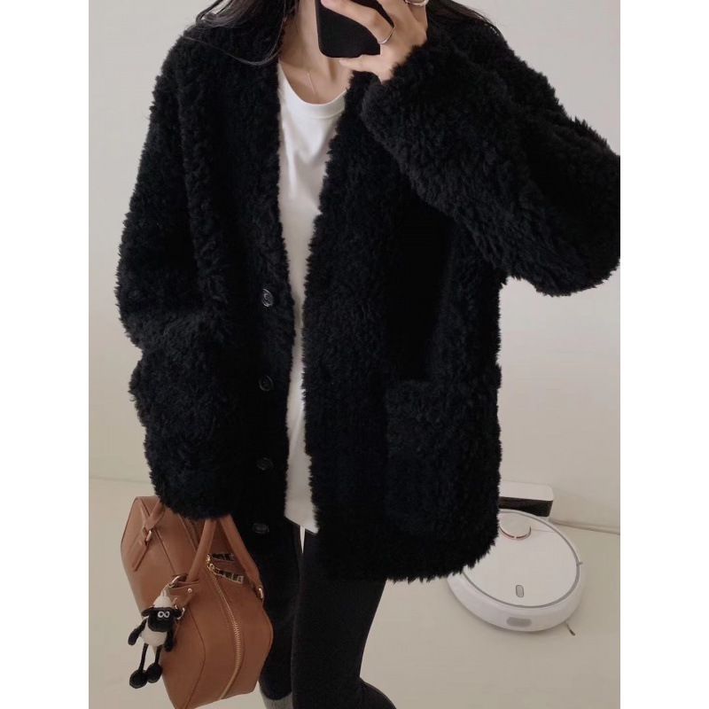 | nameOriginal | Korean style lazy style black sweater cardigan thick coat autumn and winter imitation lamb plush loose short long sleeve top for women |
