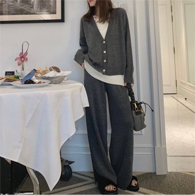 | nameOriginal | Korean style lazy style fake two-piece soft glutinous sweater suit women's autumn and winter loose split wide-leg pants sweater coat |