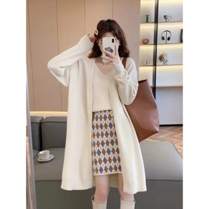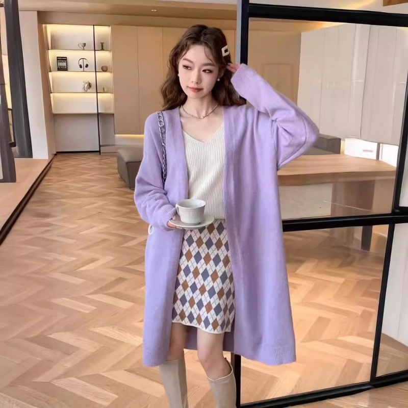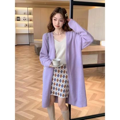 | nameOriginal | Korean Style Lazy Style Long Sweater Coat Women's 2024 New Autumn V-Neck Loose Knitted Cardigan Top Trendy |