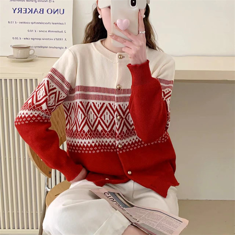 | nameOriginal | Korean Style Lazy Style Retro Printed Age-reducing Soft Waxy Knitted Cardigan Women's Spring and Autumn New Cross-border Loose Sweater for 2024 |