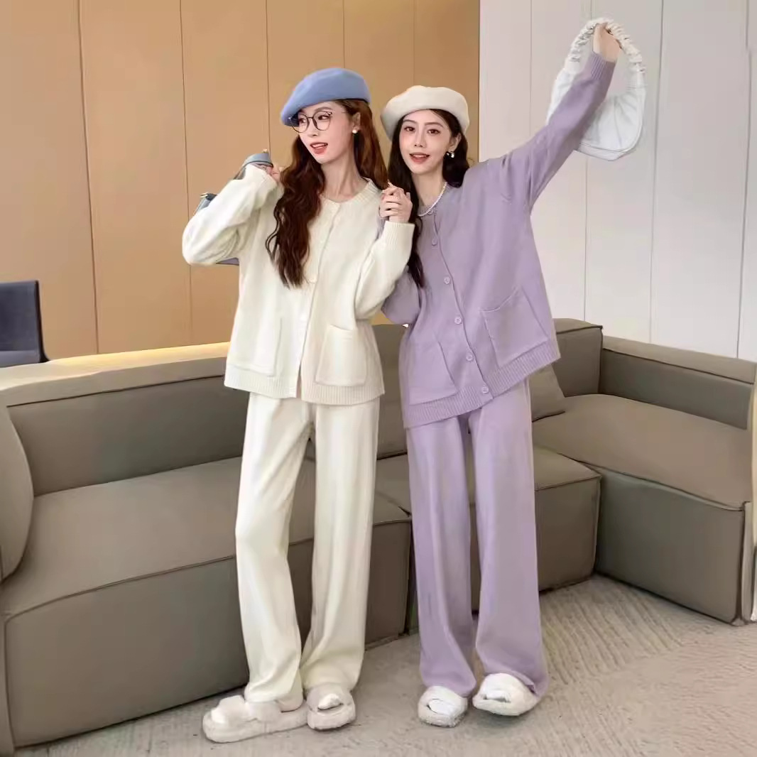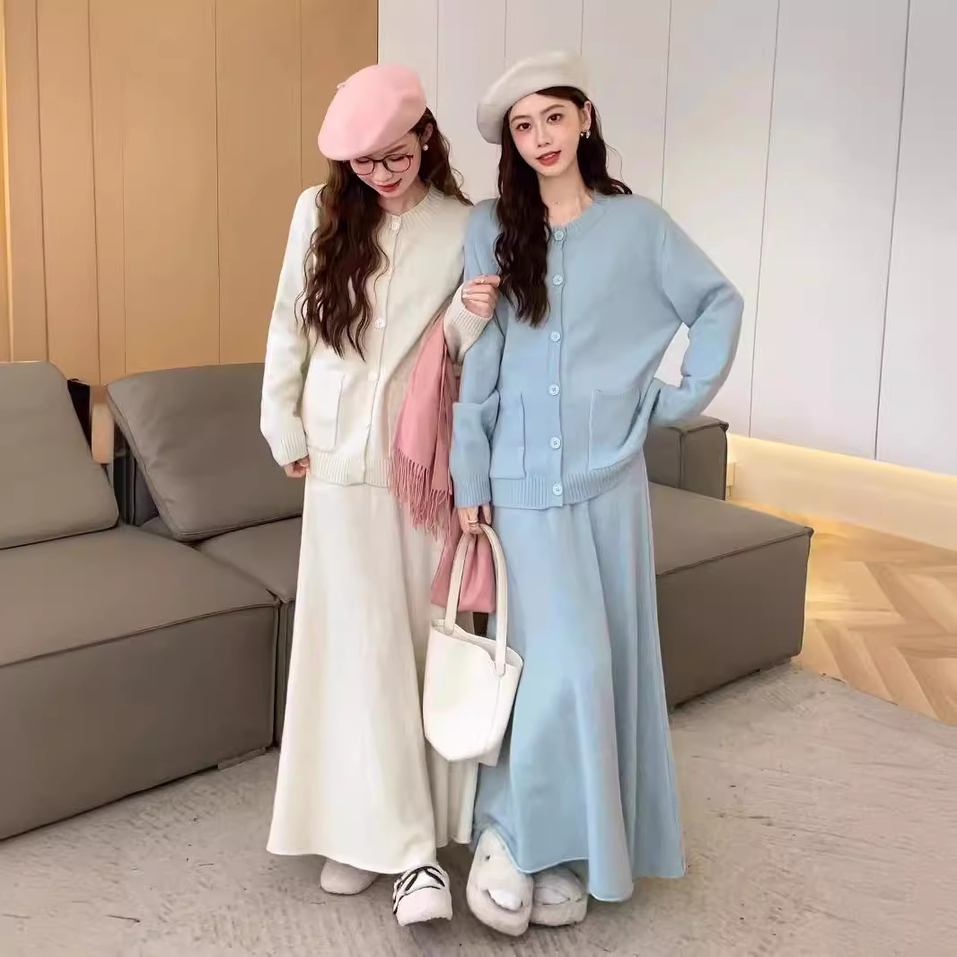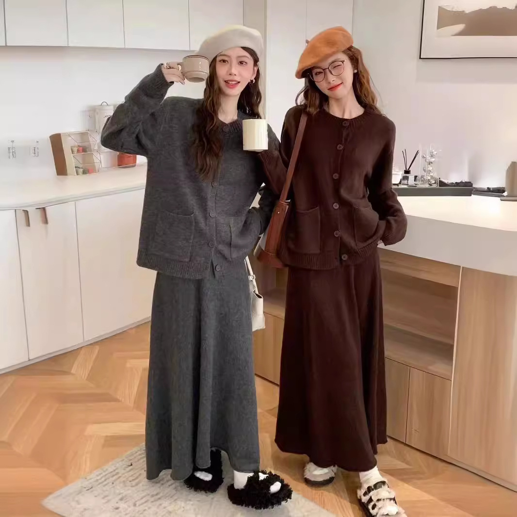 | nameOriginal | Korean Style Lazy Style Solid Color Knitted Sweater suit Autumn and Winter New Simple Casual Cardigan Skirt Two-piece Set for Women |