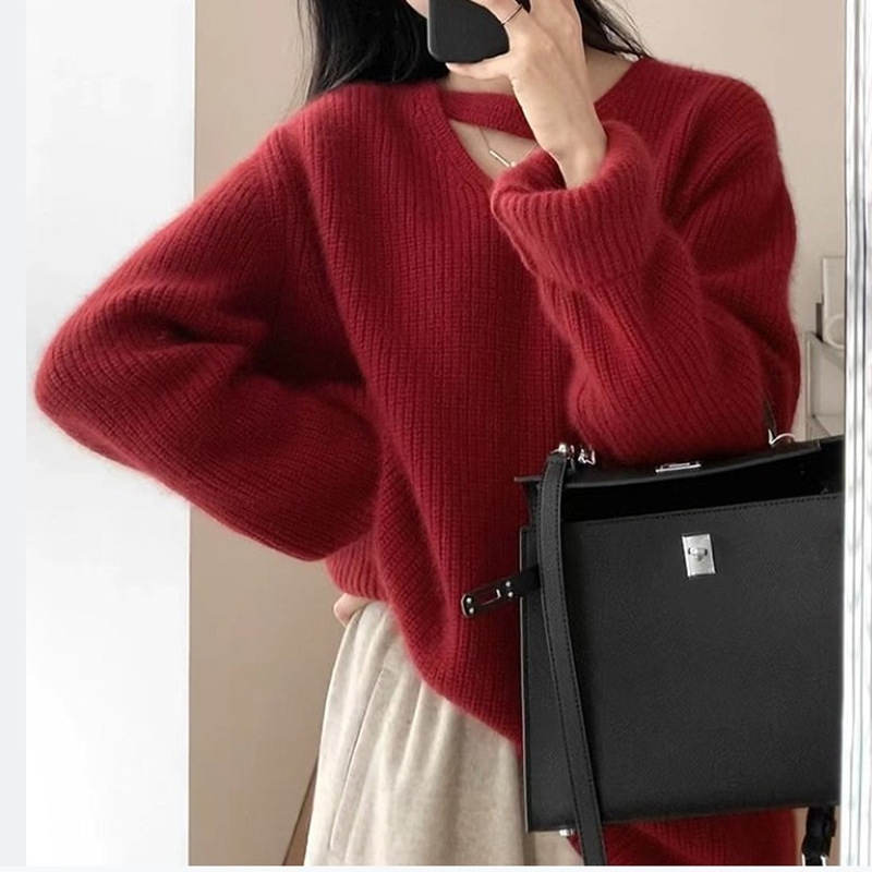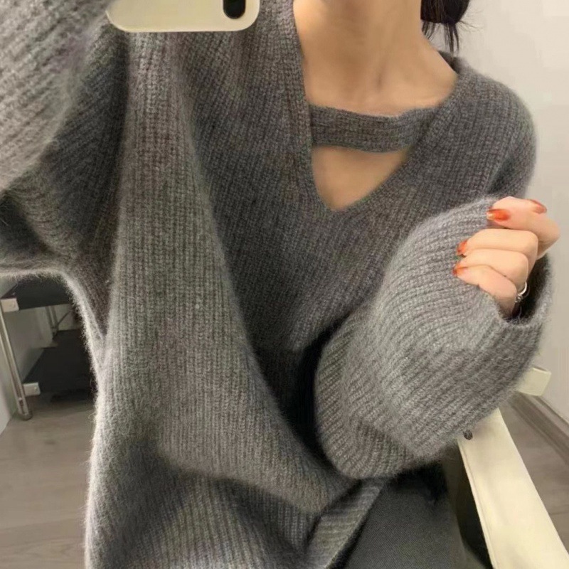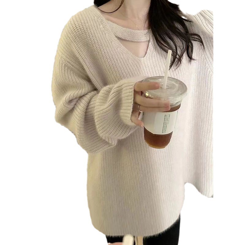 | nameOriginal | Korean style lazy style solid color V-neck hollow knitted pullover 2023 autumn and winter New loose all-match soft glutinous sweater |
