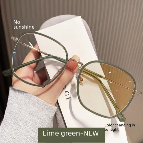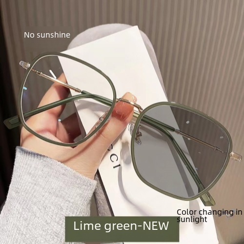 Korean-style light-sensitive color-changing myopia glasses women’s large frame ultra-light plain anti-blue light blue light big face slimming women’s frame