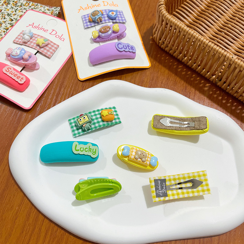| nameOriginal | Korean-style little girl cute cartoon animal hair clip baby fabric Plaid broken hair BB clip children's side bangs clip |