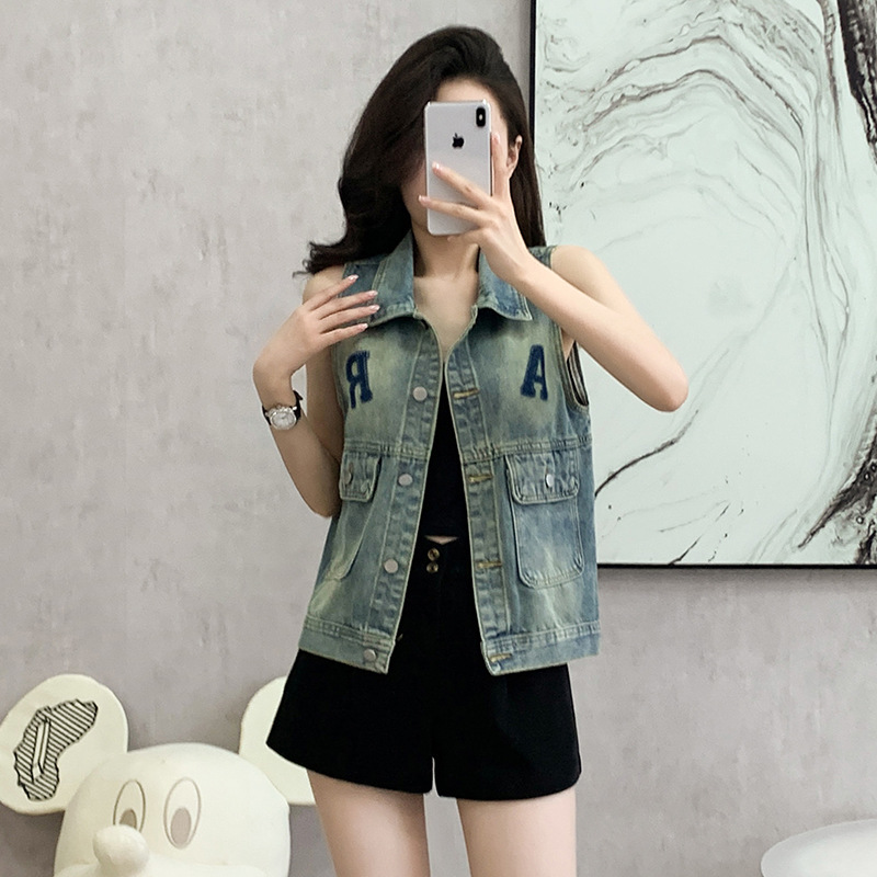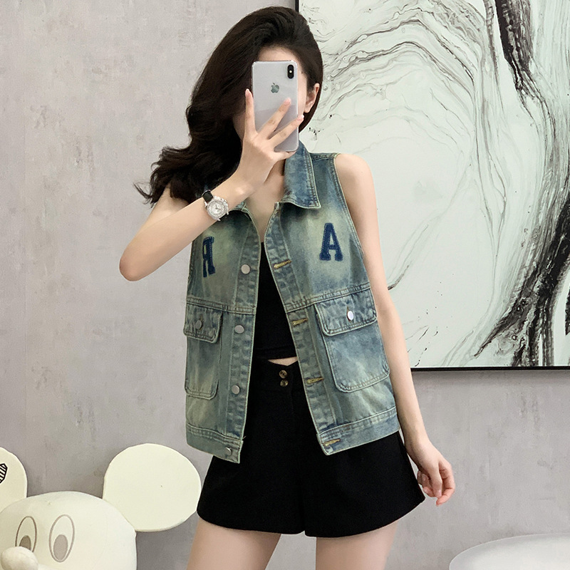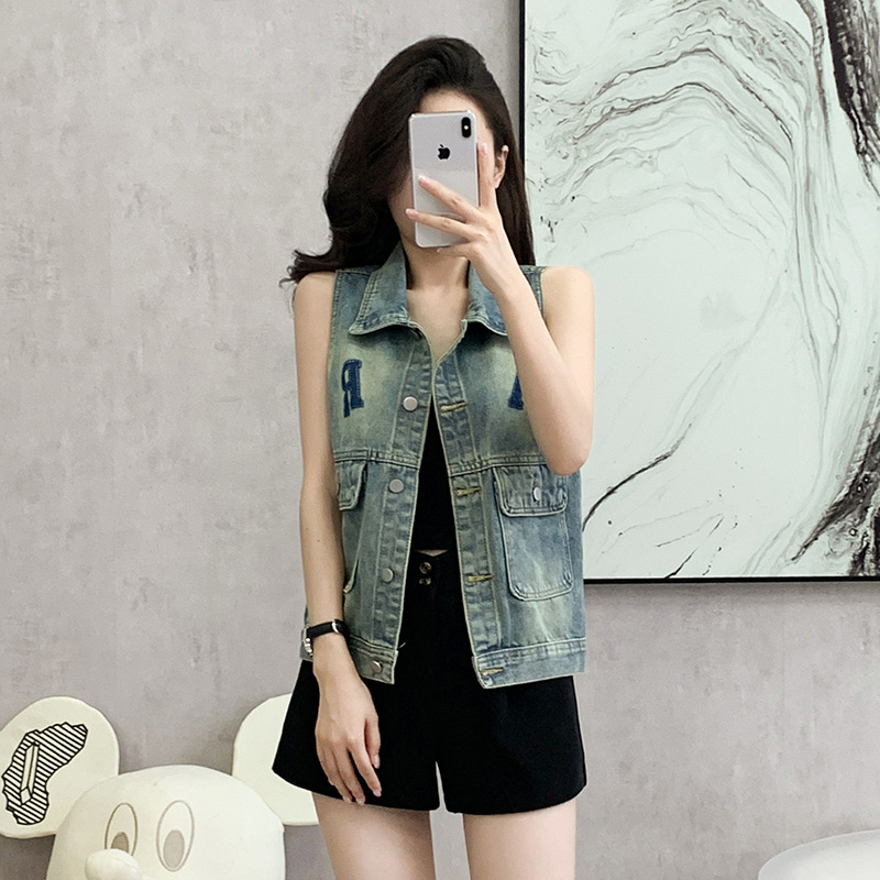| nameOriginal | Korean-style Loose All-match Lapel Denim Vest Jacket Top Large Pocket Casual Letter Printed Wessel |