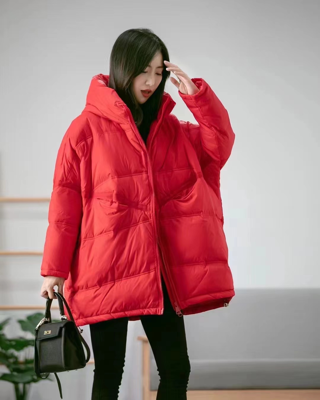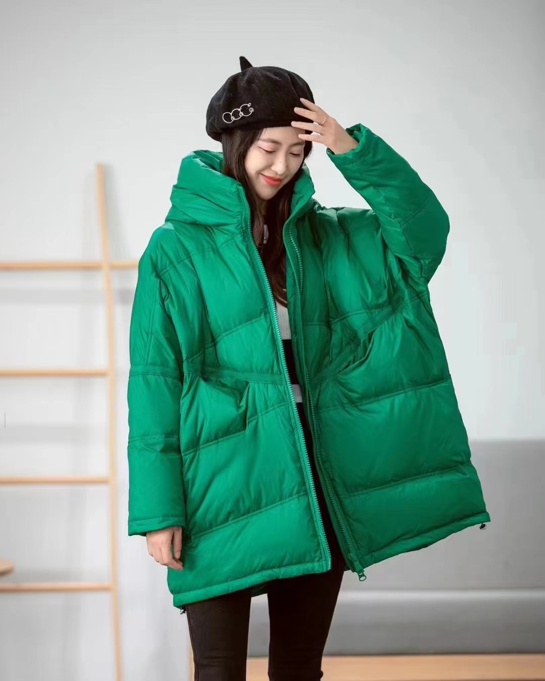 Korean style loose hooded mid-length down jacket for women 2023 new casual fashion solid color white duck down thick coat