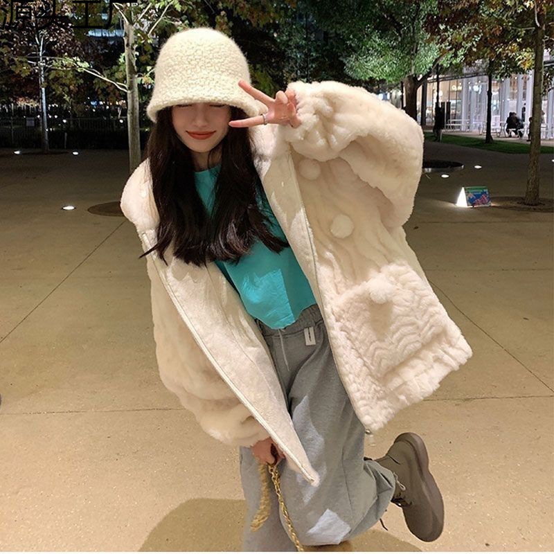 | nameOriginal | Korean-style Loose Lamb Plush Leather Coat Women's Autumn and Winter New Style fleece-lined Thickened All-match Mid-length Coat |