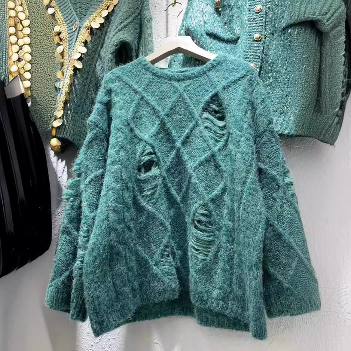 | nameOriginal | Korean Style Loose Round Neck Twist Pullover Sweater Women's 2024 Autumn and Winter New Arrival Hole Ancient Thick Thick Fashionable Knitted Sweater |