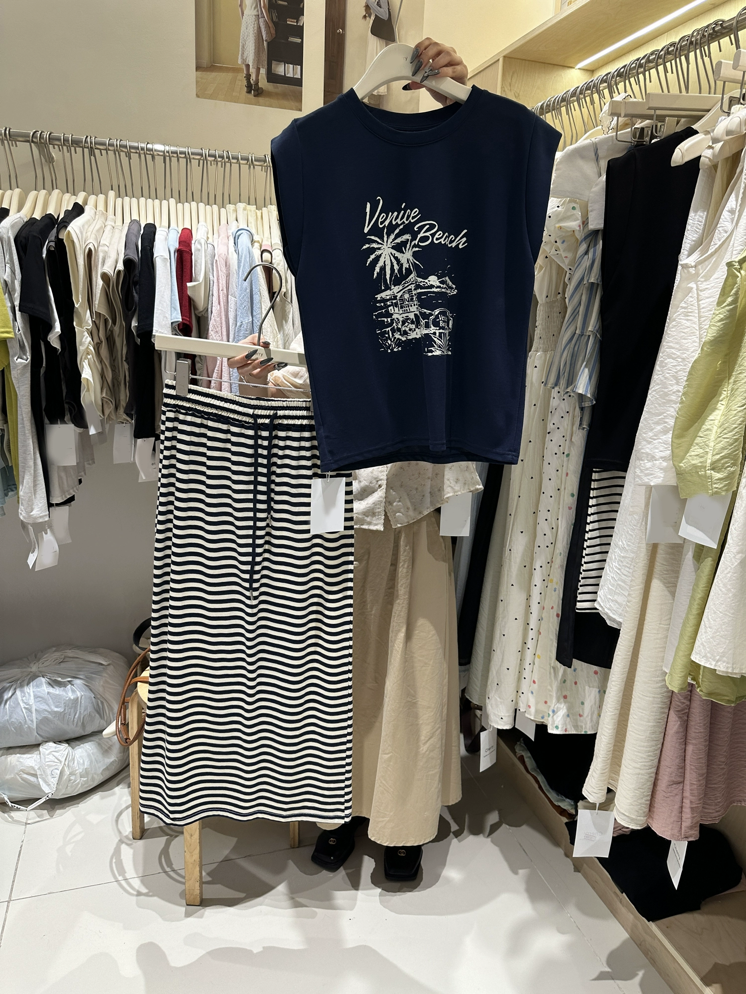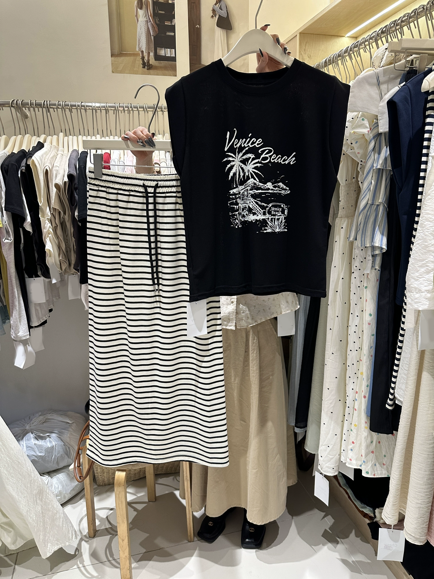 | nameOriginal | Korean style loose sleeveless printed striped skirt two-piece set |