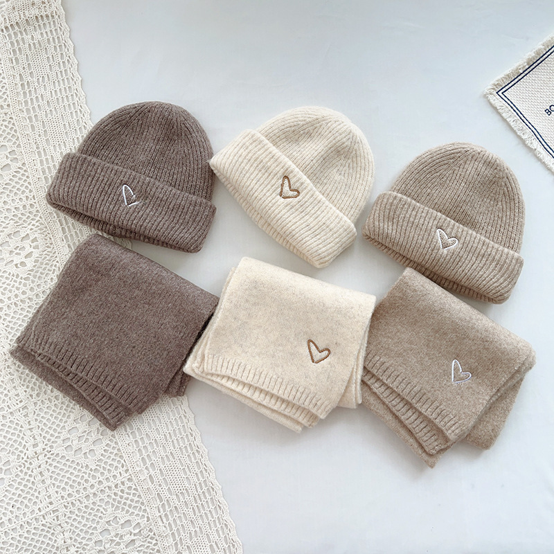 | nameOriginal | Korean style love embroidered children's hat scarf 2-Piece Set boys and girls autumn and winter solid color all-matching suit baby warm |