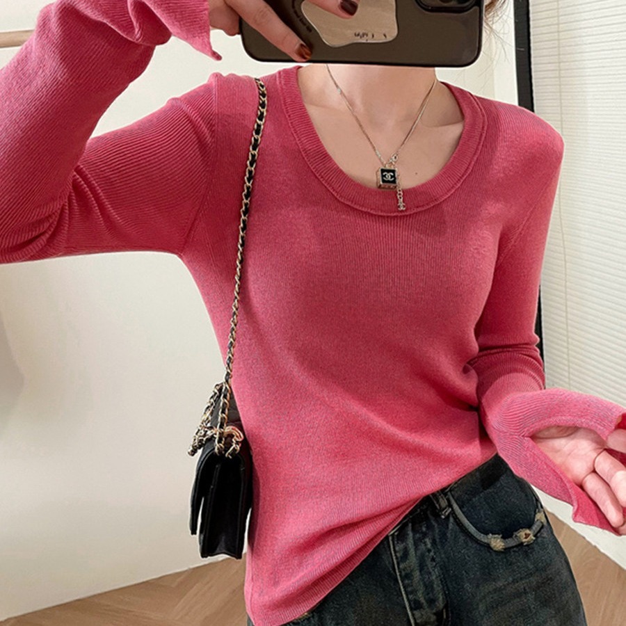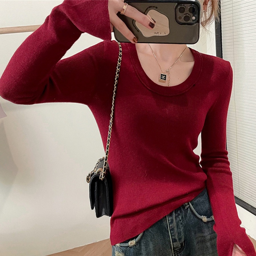 | nameOriginal | Korean style low round neck knitted bottoming shirt sweater women's 2023 new wool slim fit inner top trendy 4188 |