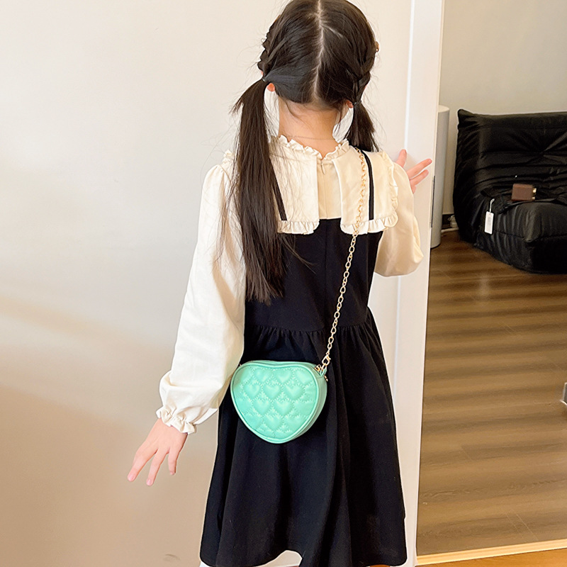 Korean Style Men’s and Women’s Shoulder Bag Fashionable Diamond Embroidery Line Cute Heart Shaped Children’s Crossbody Bag New Solid Color Children’s Bag